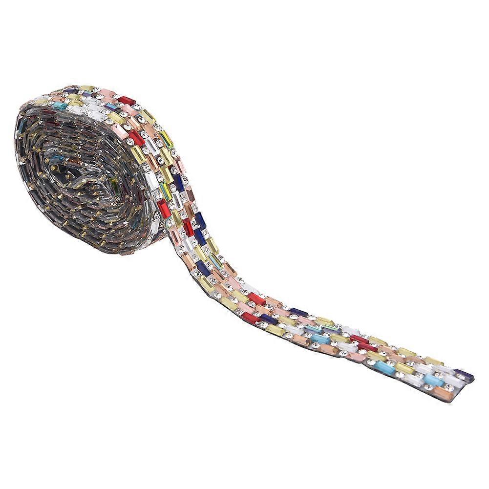 1yard Multicolor Crystal Glass Rhinestone Chain Hotfix Ribbon Wedding Dress Clothing Decoration