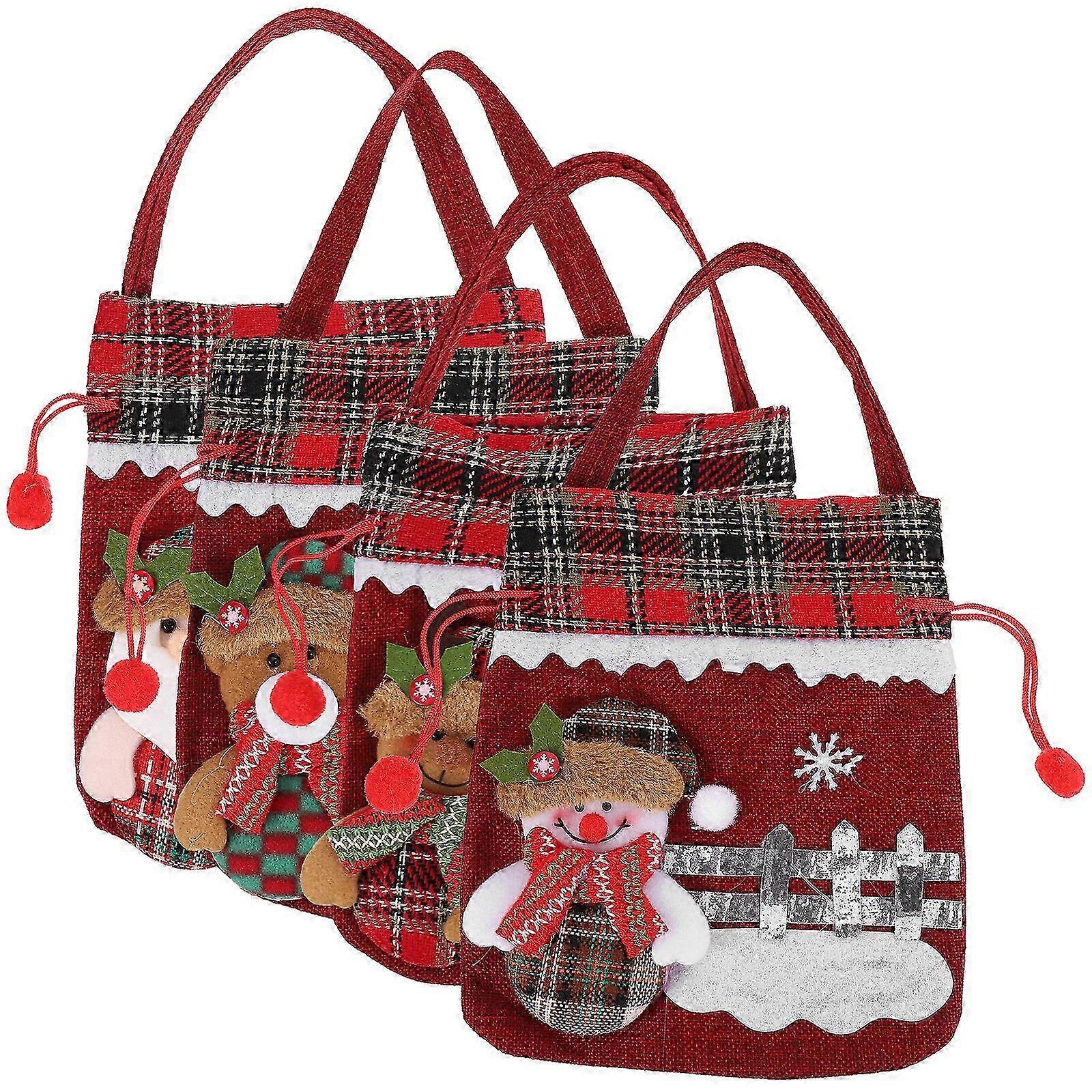 Drawstring Gift Bags 4pcs Christmas Themed Party Accessories