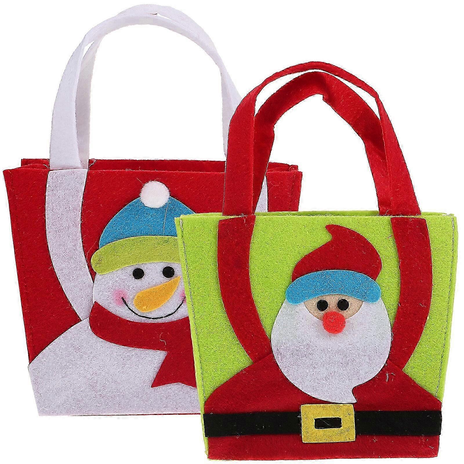 2Pcs Christmas Goodies Bag Packaging Bag Christmas Treat Bag Christmas Gift Bag for Party Have you started preparing for your Christmas party? Come and trythislovely Christmascandy bag. There are different cartoon patterns, which give you and your friends a great visual experience and create a wonderful atmosphere for your party. Our Christmastote bagis designed with creative appearance that can be interesting for you. Features -Color:Assorted Color -Material:Non-woven fabric -Size:25.50X19.00X1.50cm/10.02X7.47X0.59in -Made of non-woven fabric material, this Christmastote bag is not easy to damage, and can be used for any items. -With Christmaselements design and adorable cartoon patterns makethisChristmasCandy Bag look eye-catching. -ThisChristmastote bag can meet your different needs and you can share them with friends. -The bright color can make you have a good mood and can create a holiday atmosphere. -You can usethisChristmascandy bags to store candy, cookie and some small gifts, that is practical.Packing list2 x Gift Bags