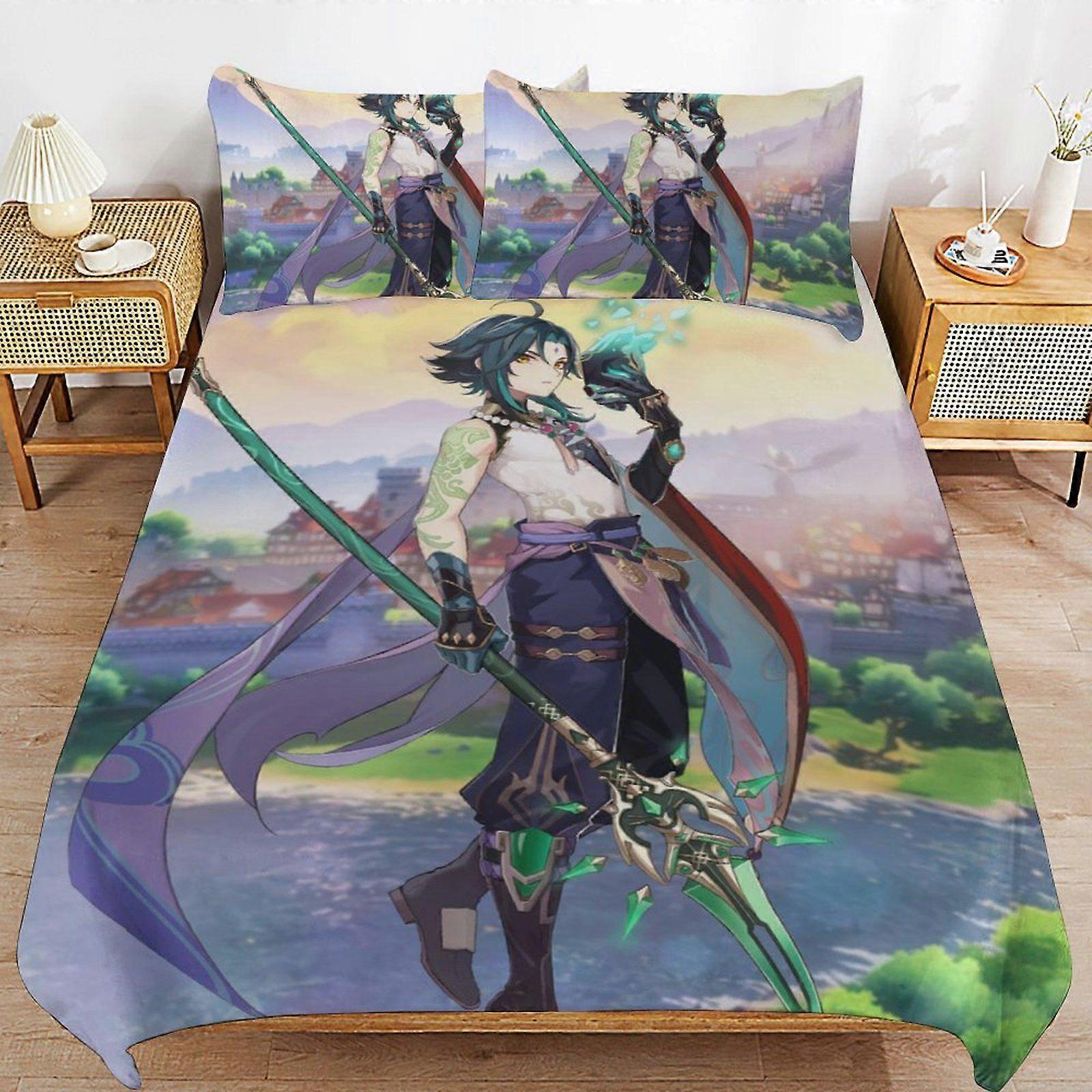 t101 Genshin Impact xiao Practical Zip Function Smooth Bedding Surface Soft Layer Duvet Cover Sets for Rest Night d101