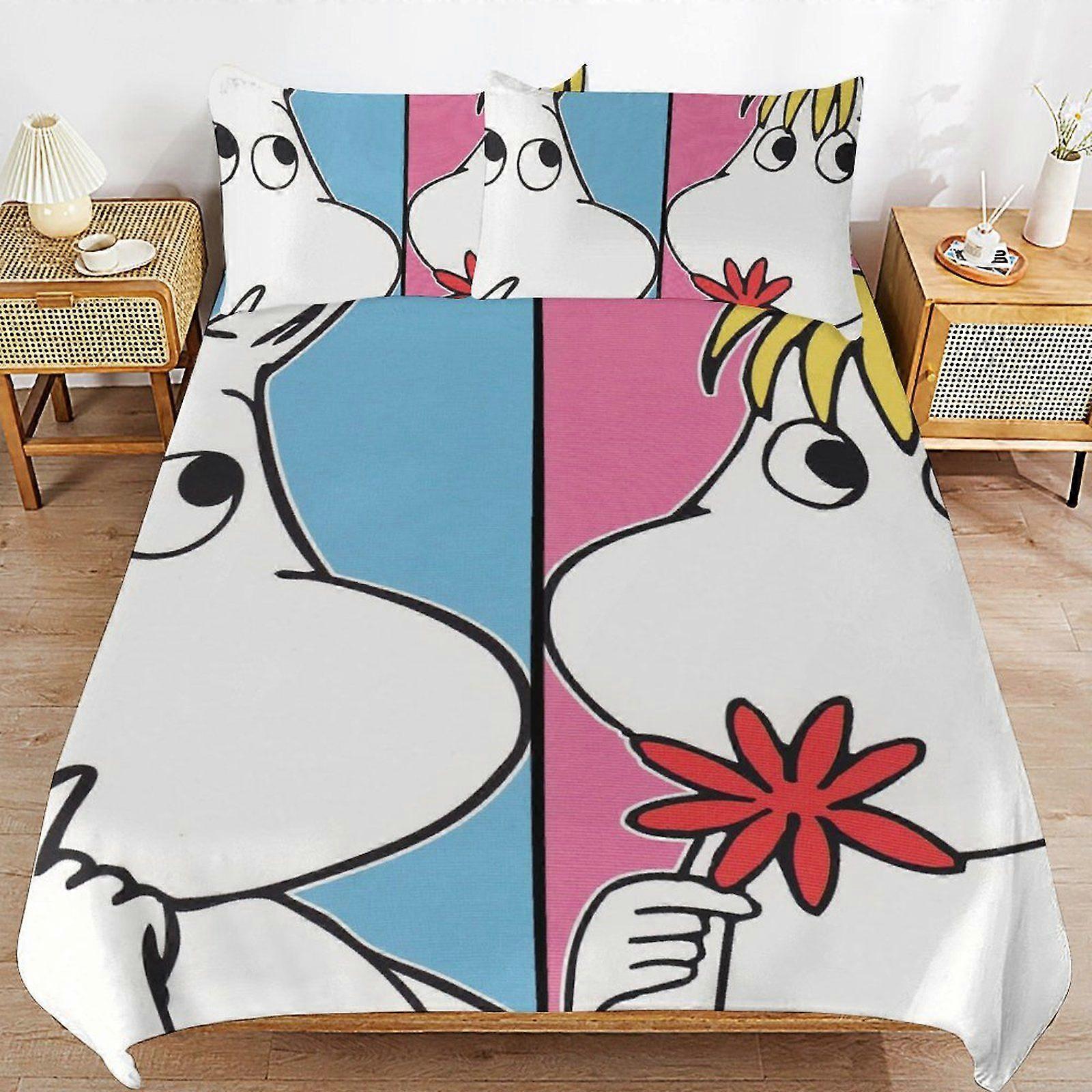 t143 Moomin Falls in Love Comic Strip Light Zipper System Durable Surface Breathable Fabric Sleep Fit Duvet Cover Sets Everyday d143
