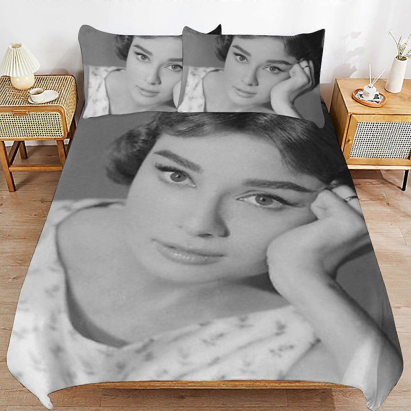 t508 Audrey Hepburn Thread Safe Comfort Handling Minimal Surface Zipper Fit Sleep Kit Duvet Cover Sets Support d508