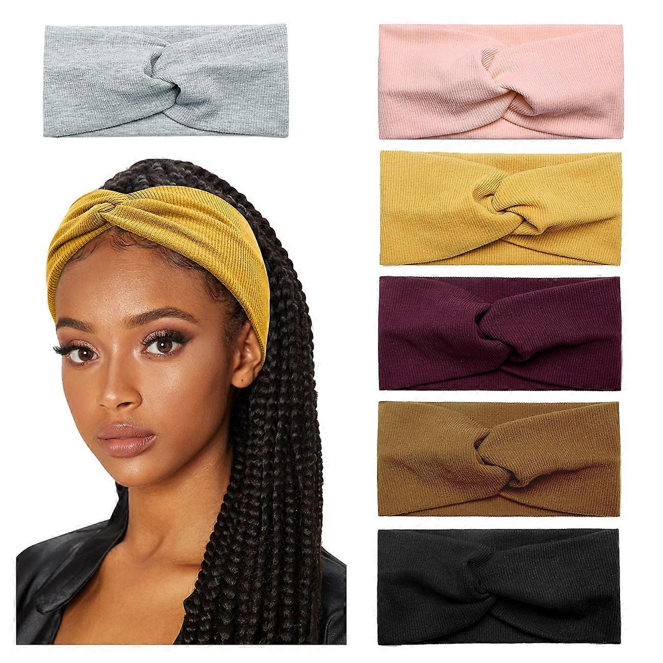 6 Pack Turban Headbands for Women Wide Head Wraps Knotted Elastic Teen Girls Yoga Workout Solid Color Hair Accessories