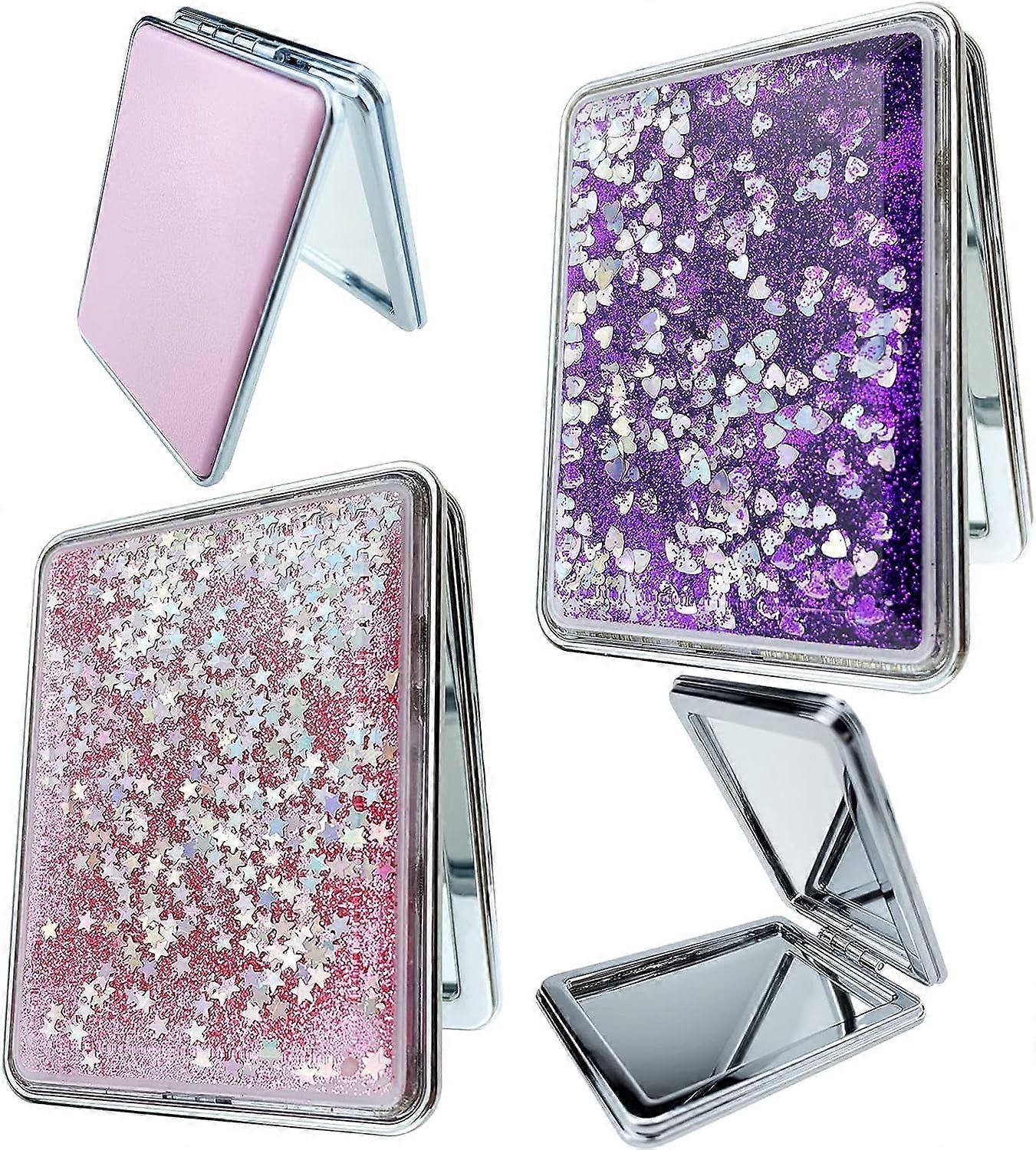 LINLIN 2 Pcs Compact Mirror Mini Folding Makeup Mirror Pink & Purple Travel Mirror Double Side Portable Mirror for Men Women Girls Pocket Wallet