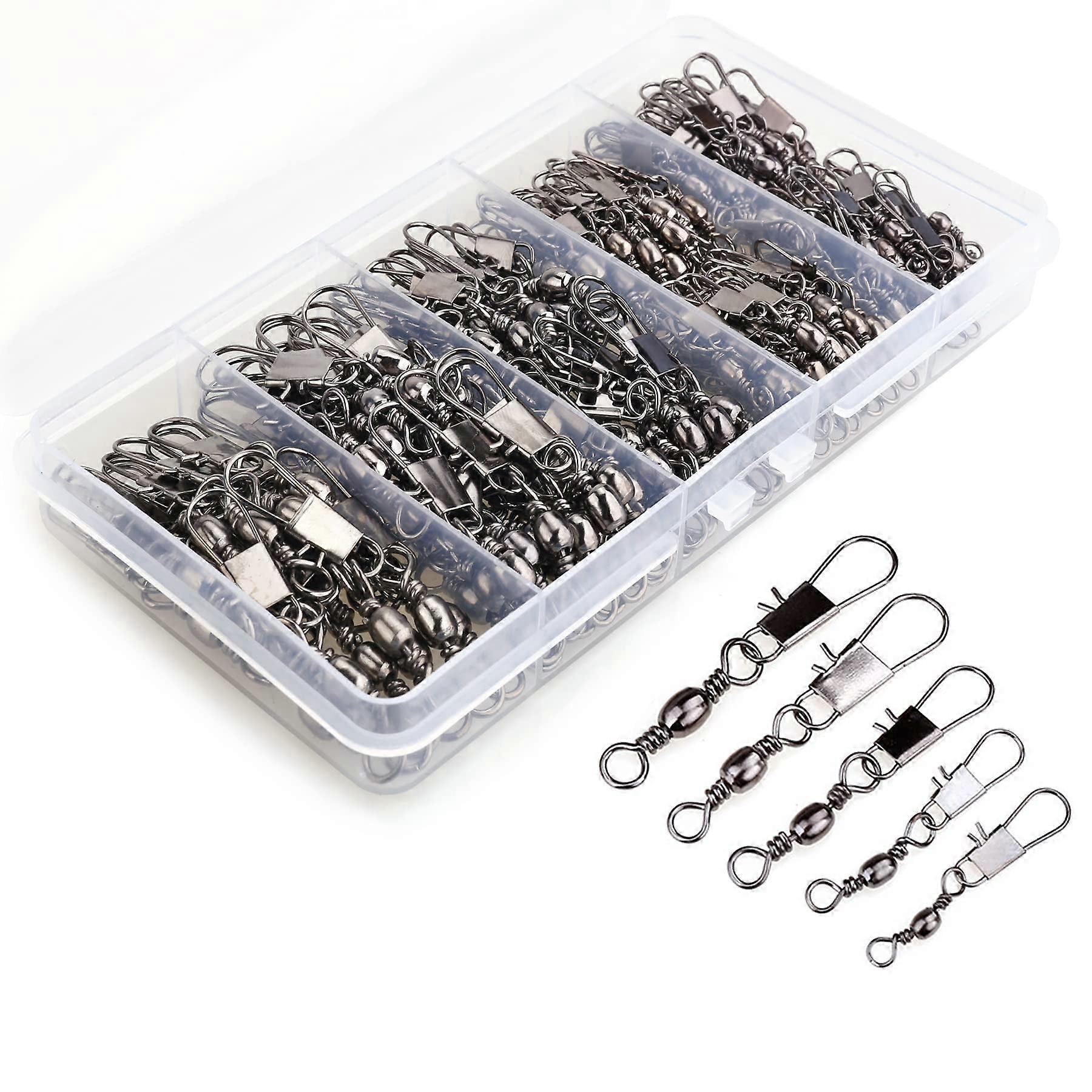 Emlimny 100PCS Barrel Snap Swivel Fishing Accessories, Premium Gear with Ball Bearing Swivels Snaps for Quick Connect Lures