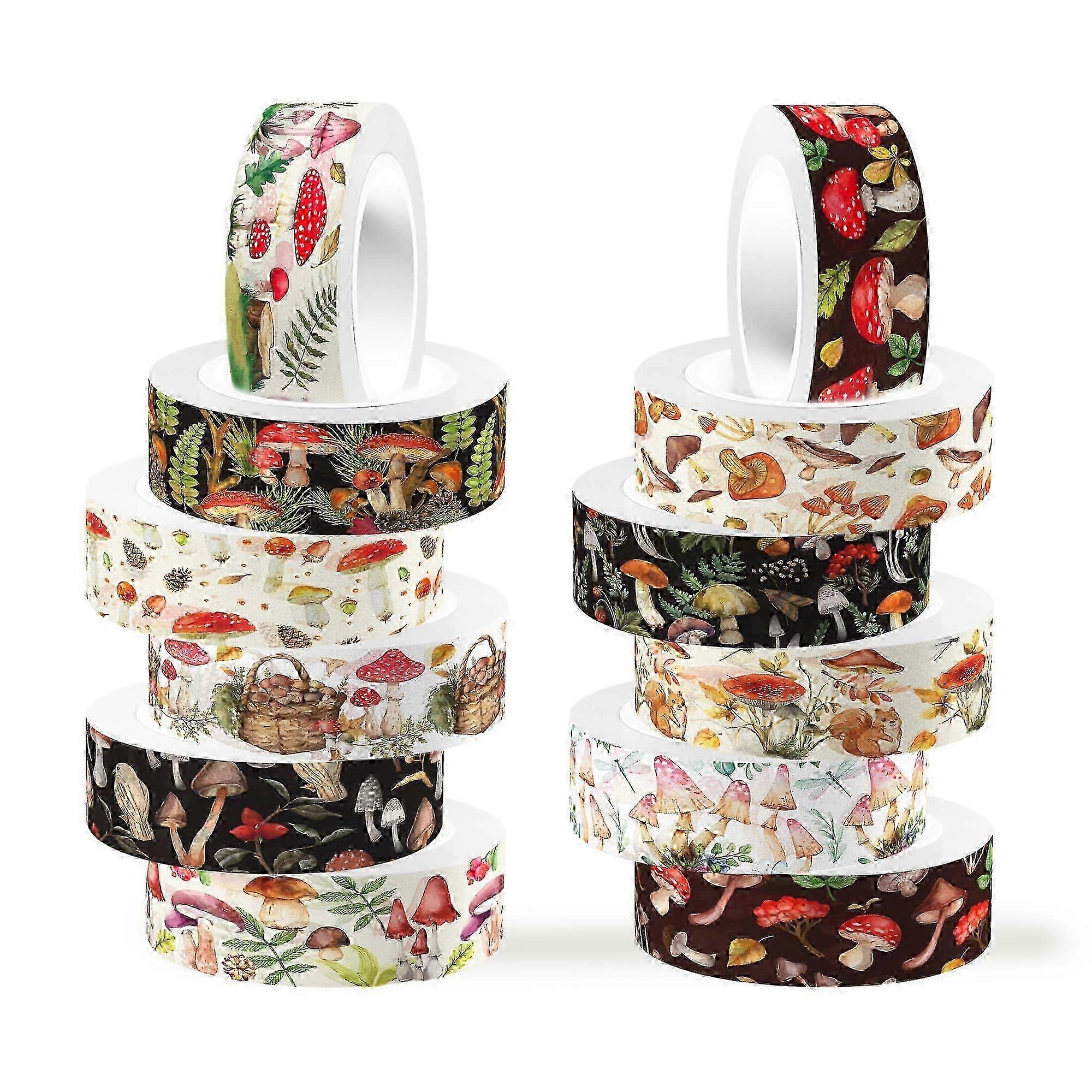 12 Rolls of Mushroom Tape Set for DIY Crafts & Gift Wrapping Decor