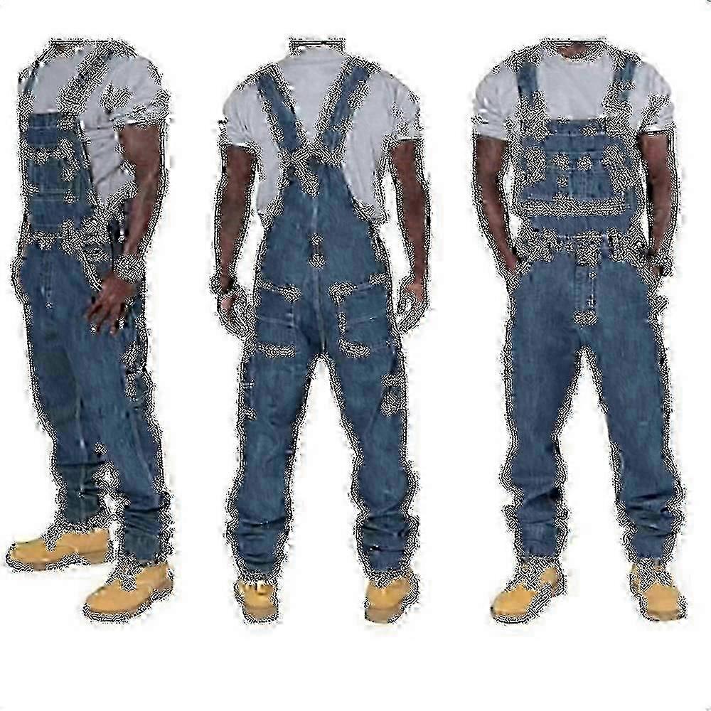 Plus Size Fashion Denim Overalls for Men with Bib Style, Loose Fit, Multiple Pockets & Adjustable Straps - SS Collection