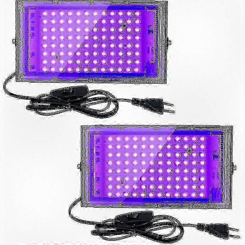 Improved UV LED Floodlights: 2pcs 100W Blacklight with IP65 Waterproof for Aquarium, Party, Neon Art, & Glow Poster Effect Lighting