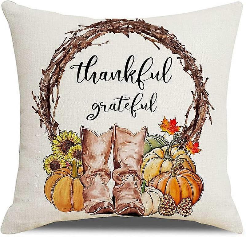 Fall Decor Pillow Covers 18x18, Linen Square Throw Pillowcases for Outdoor Sofa, Bedding, Car, Home Decor, 18x18 Inch