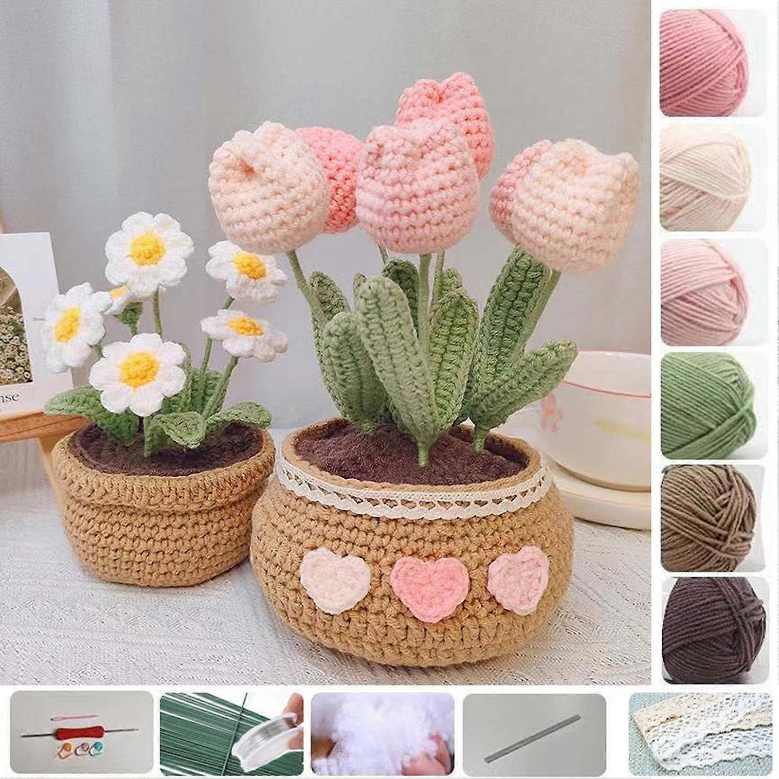 Hesroicy 1 Set Vibrant Color Simulation Flower Creative DIY Crochet Kit Tulip Potted Crochet Material Bag