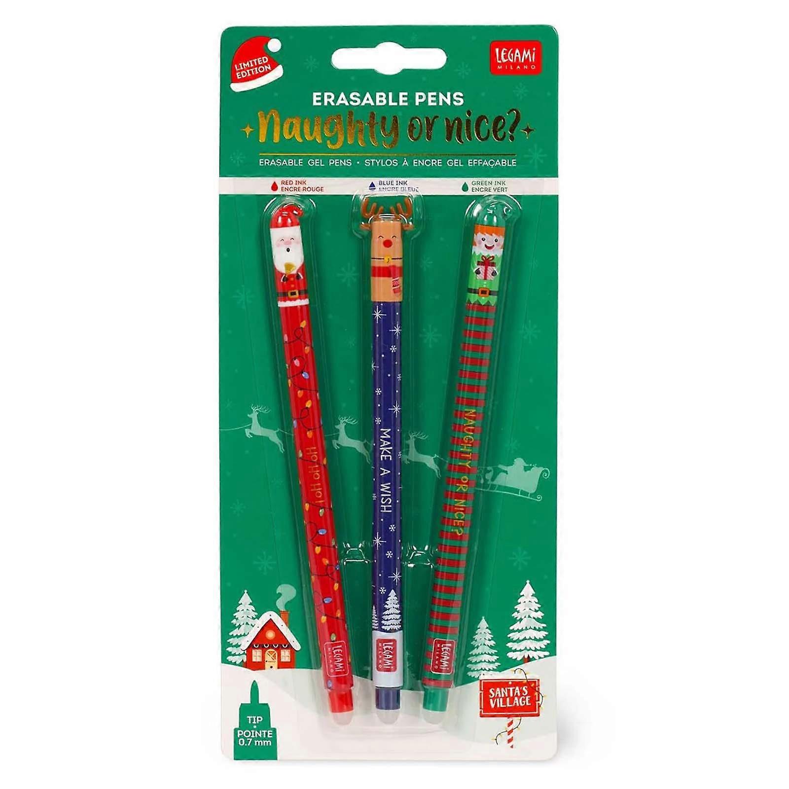 New.Legami.Christmas.Set With 3 Erasable Gel Pens: Santa Claus, Reindeer, Elf