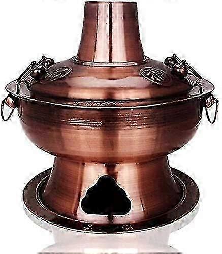 Traditional Mongolian Style Pure Copper Hot Pot - 32cm Diameter Charcoal Fueled Cooking Pot