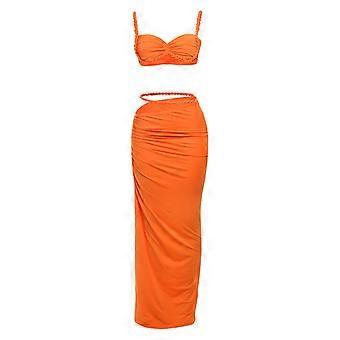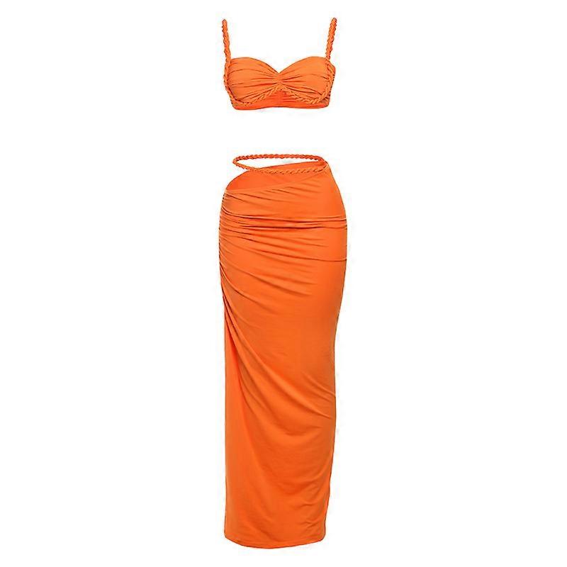 Women's Spring Sexy Solid Color Backless Camisole Vest and Bodycon Skirt Set