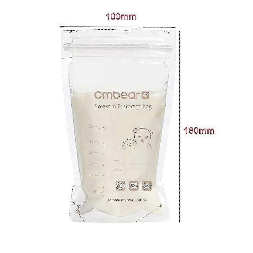 Cmbear Breastmilk Storage Bags Breast Milk Storing Bags 220ml or 7.5oz Capacity Pre-Sterilized BPA Free Double Zipper Seal Leak-Proof for Breastfeeding, Pack of 50pcs Features: [Food Grade Material]Made of PE and PET food grade material, BPA free, and sterilized by gamma ray, more safe e. [220ml Large Capacity]Can store 220ml of breast milk, and you can see the different capacity scale clearly on the milk storage bag. [Double Zipper Seal Design]Double zippers seal, can avoid leakage effectively, guaranteeing the breast milk isolated from outside air. [Freely Control the Rate of Flow]The base of breast milk storage bag has a preset opening and when you cut it off, the breast milk can flow extremely large or small. [Recorded Conveniently]You can record the name, date and the storage capacity of breast milk, so that you can management conveniently. Specifications: Quantity: 30pcs or 50pcs or 60pcs(optional) Material: PE and PET Capacity: 220ml or 7.5oz Packing List: 50 x Piece of Breastmilk Storage Bags Note: Due to the light and screen setting difference, the item's color may be slightly different from the pictures. Please allow slight dimension difference due to different manual measurement. Sold by-YJL official store