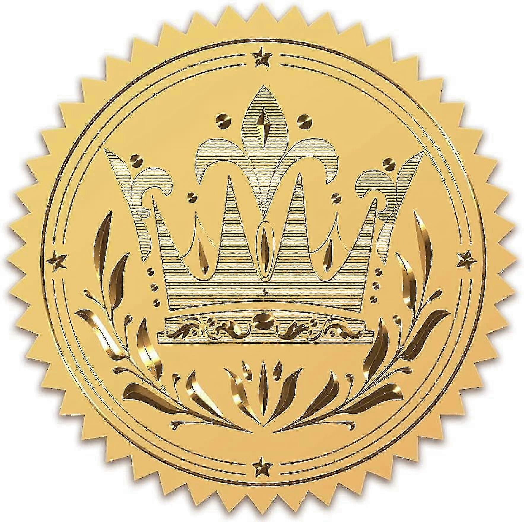 2025 2" Gold Foil Sticker Crown 100pcs Certificate Seals Gold Embossed Round Embossed Foil Seal Stickers for Envelopes Invitation Card Diplo