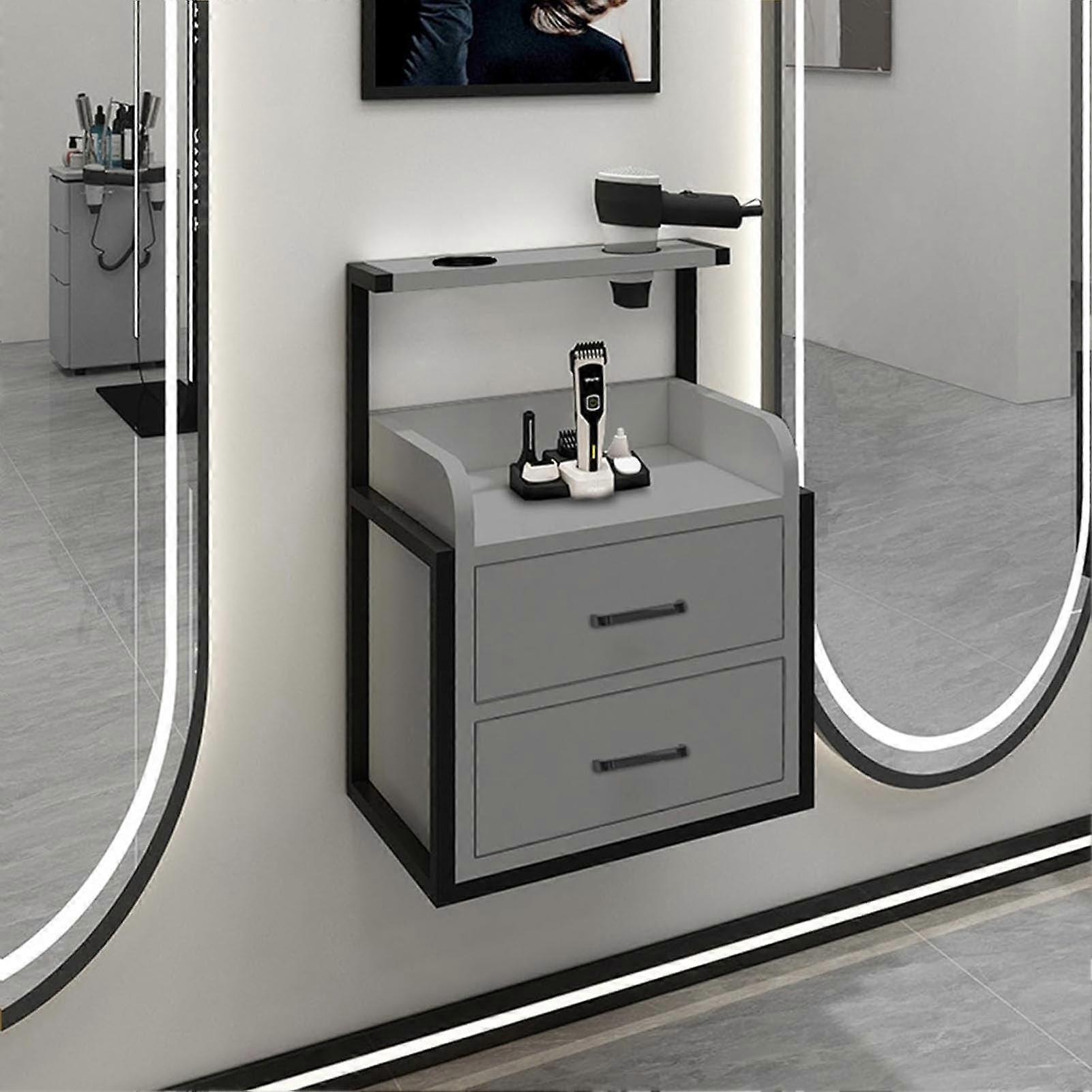 WallMounted Barber Cabinet, Storage Table Drawers, Styling Station Organizer With 2 Hair Dryer Holders, Model 01