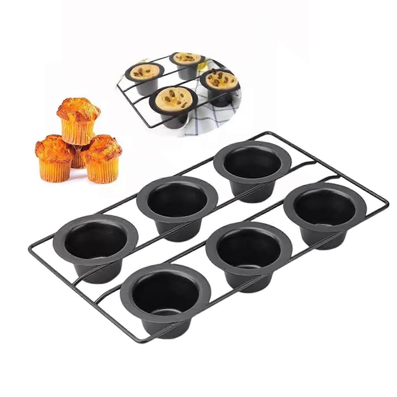 Round Muffin Baking Pan NonStick 6Cavity Cupcake Bakeware For Oven Vertical Cup Design Black Waffle Pudding Pan