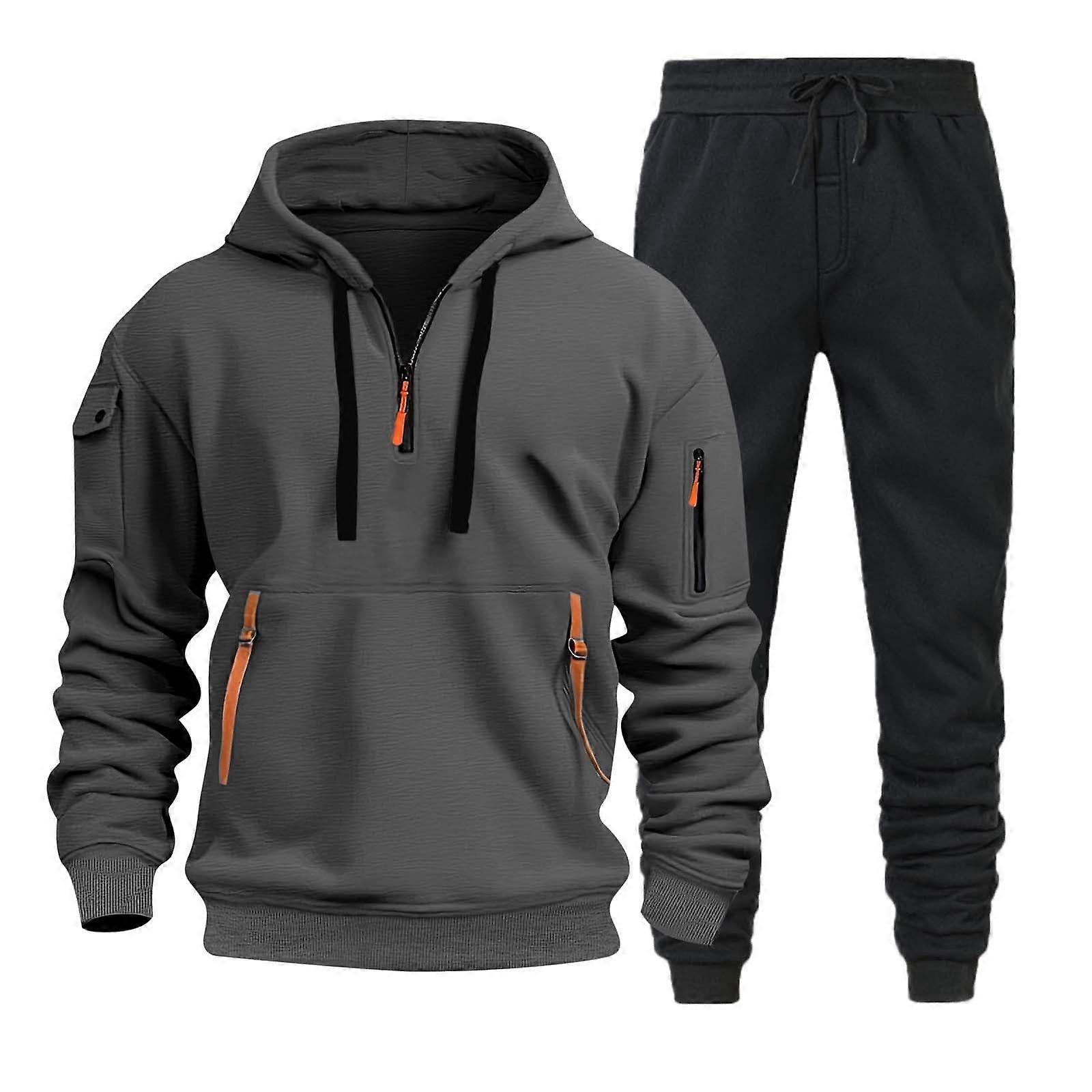 Men's Jogging Suit Grey XL, 2Piece Tracksuit With Hoodie And Trousers, Autumn Winter Sportswear