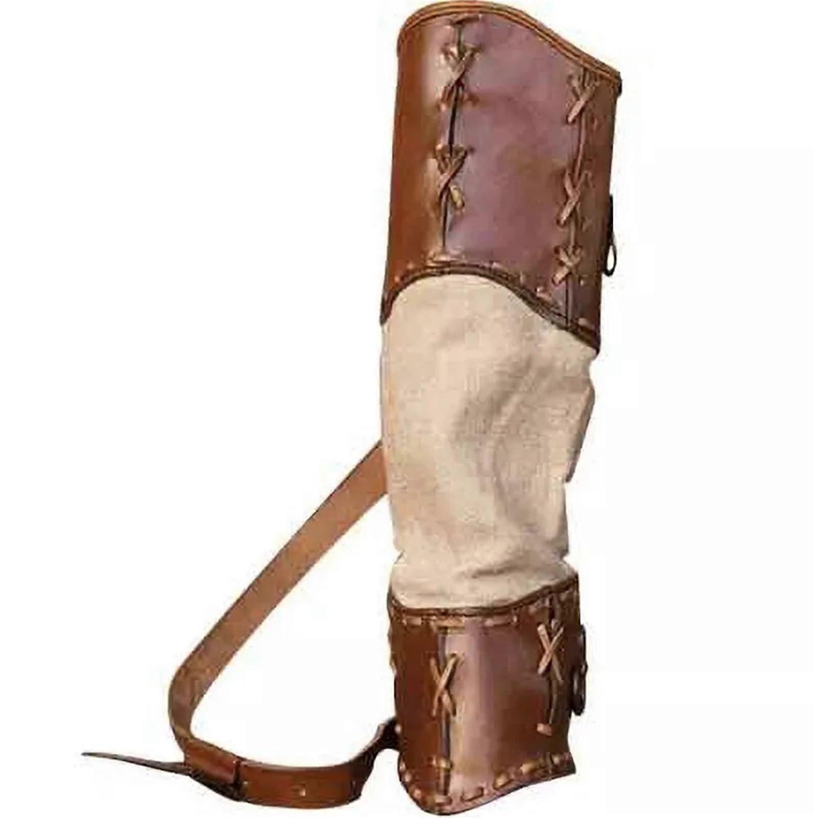Archery Quiver Leather Back Arrow Holder Bag Holster With Shoulder Belt Brown For Practicing Outdoor Archery