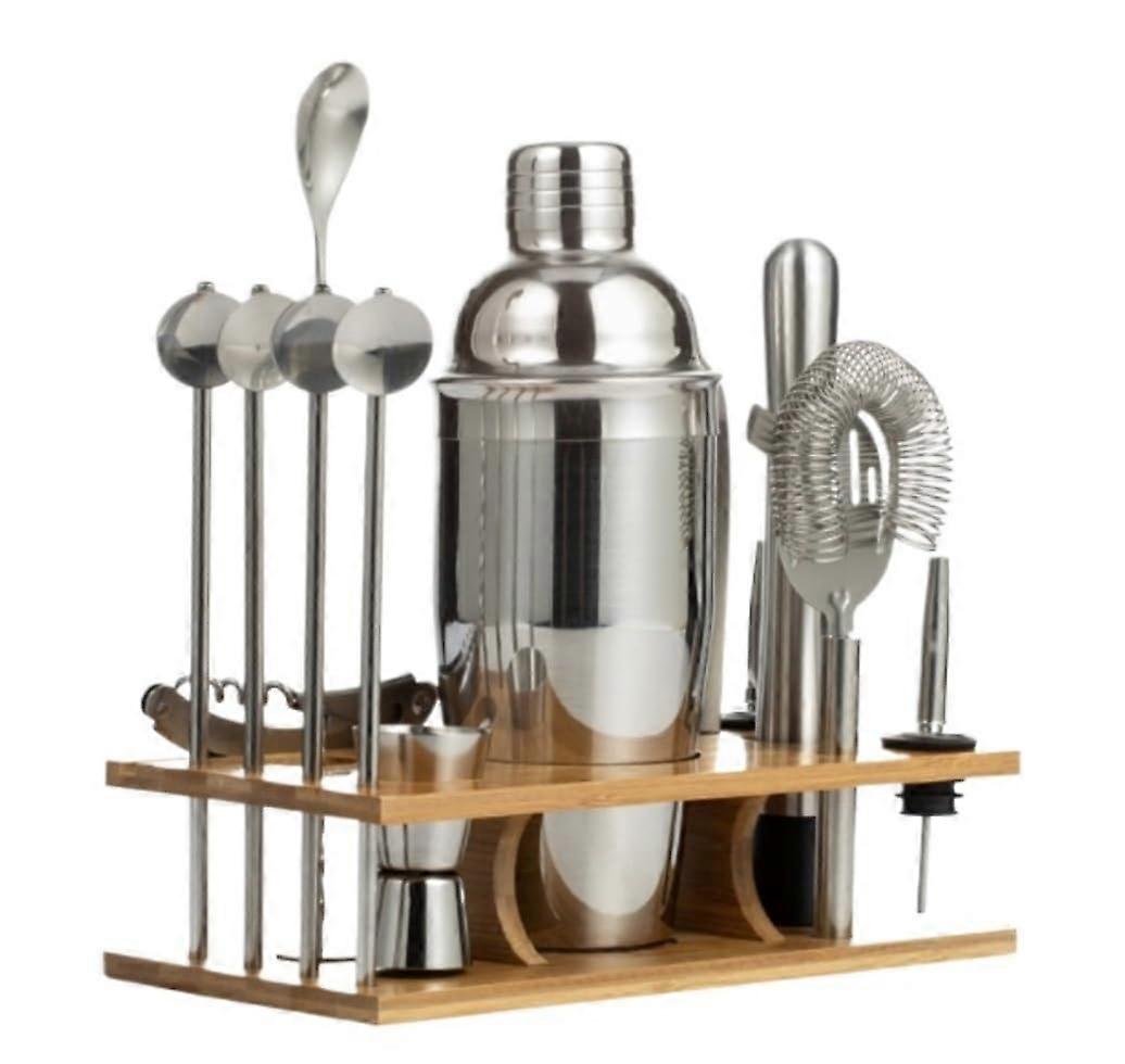 This stand is meticulously designed to keep all cocktail accessories organized. It securely holds tools in one place, so you never have to worry about losing them. The stand includes drawers and cabinets to keep your kitchen or bar area tidy, and the accessories are made of a quality stainless steel alloy for durability. The mixing kit offers versatile functionality for a wide range of cocktails. Whether you prefer classic or innovative blends, this bartending set provides the tools you need to bring your ideas to life with ease. This bar set is suitable for a variety of occasions and users. It is ideal for cocktail enthusiasts at weddings, birthdays, housewarmings, Thanksgiving, Christmas, Valentine's Day, or business events. It is recommended for beginners as well as experienced bartenders, couples, families, and friends. The surface is finely polished to resist rust and is easy to clean. All accessories are dishwashersafe, making cleanup quick and straightforward. Usage scenarios Holiday hosting: Use the kit to craft signature cocktails for guests during holiday gatherings with minimal setup. Special events: Set up for weddings or corporate events to provide accessible tools for bartenders and enthusiastic helpers. Everyday home bar: A practical solution for beginners learning basic techniques and for seasoned users experimenting with drinks.