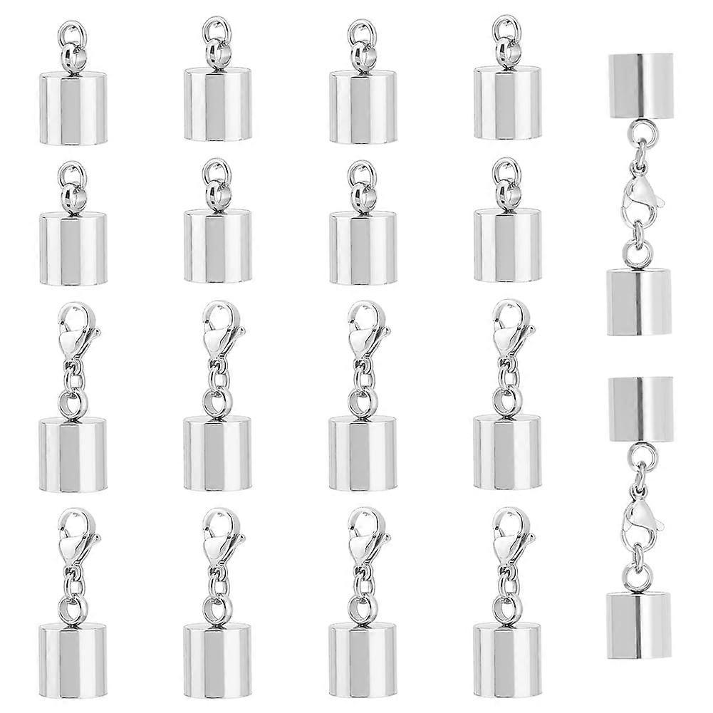 Stainless Steel Leather Cord Ends 9mm Inner Diameter Barrel End Caps With Jump Rings Lobster Claw Clasps 20Pcs