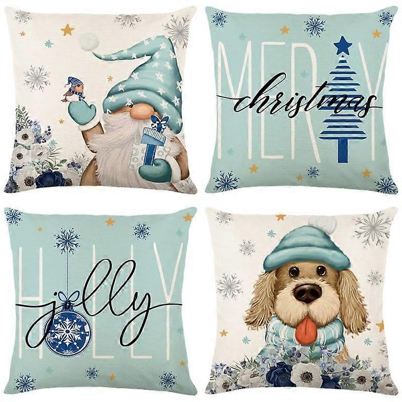 Christmas Throw Pillow Covers Blue Snowman Joy Striped Xmas Trees For Sofa Pillowcases 50x50cm / 19.69x19.69in Set Of 4