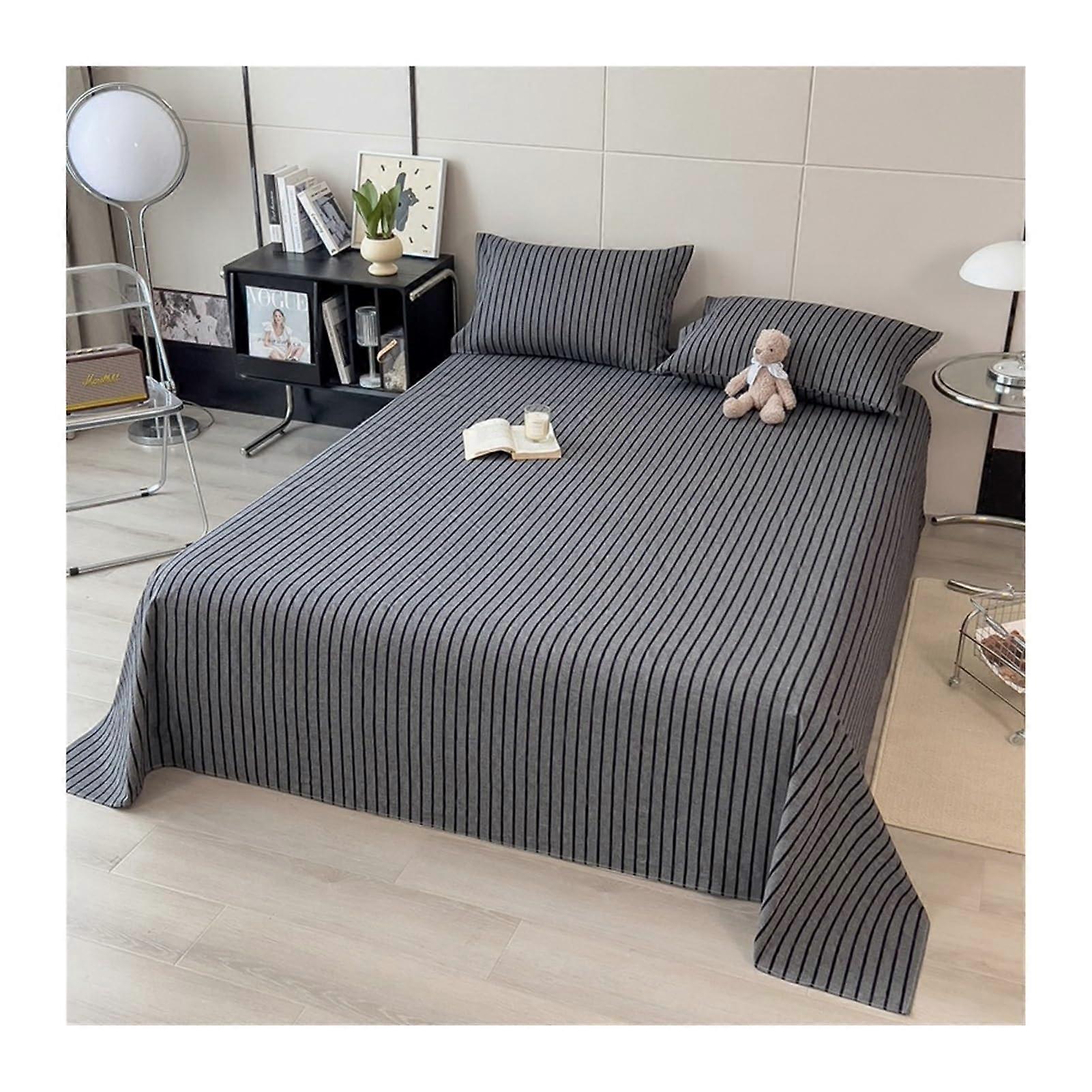 Flat Sheet Plaid Stripe 100% Washed Cotton Breathable Twin Full Queen Black 160x230cm + 48x74cm