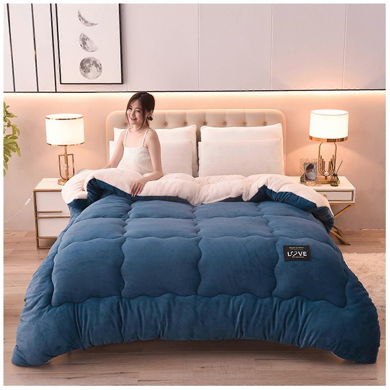 Super Warm Lamb Velvet Duvet Quilt, DoubleSided Lambsfaux wool, CashmereFeel, AllSeason, Dark Blue, 200x230 cm, 4 kg