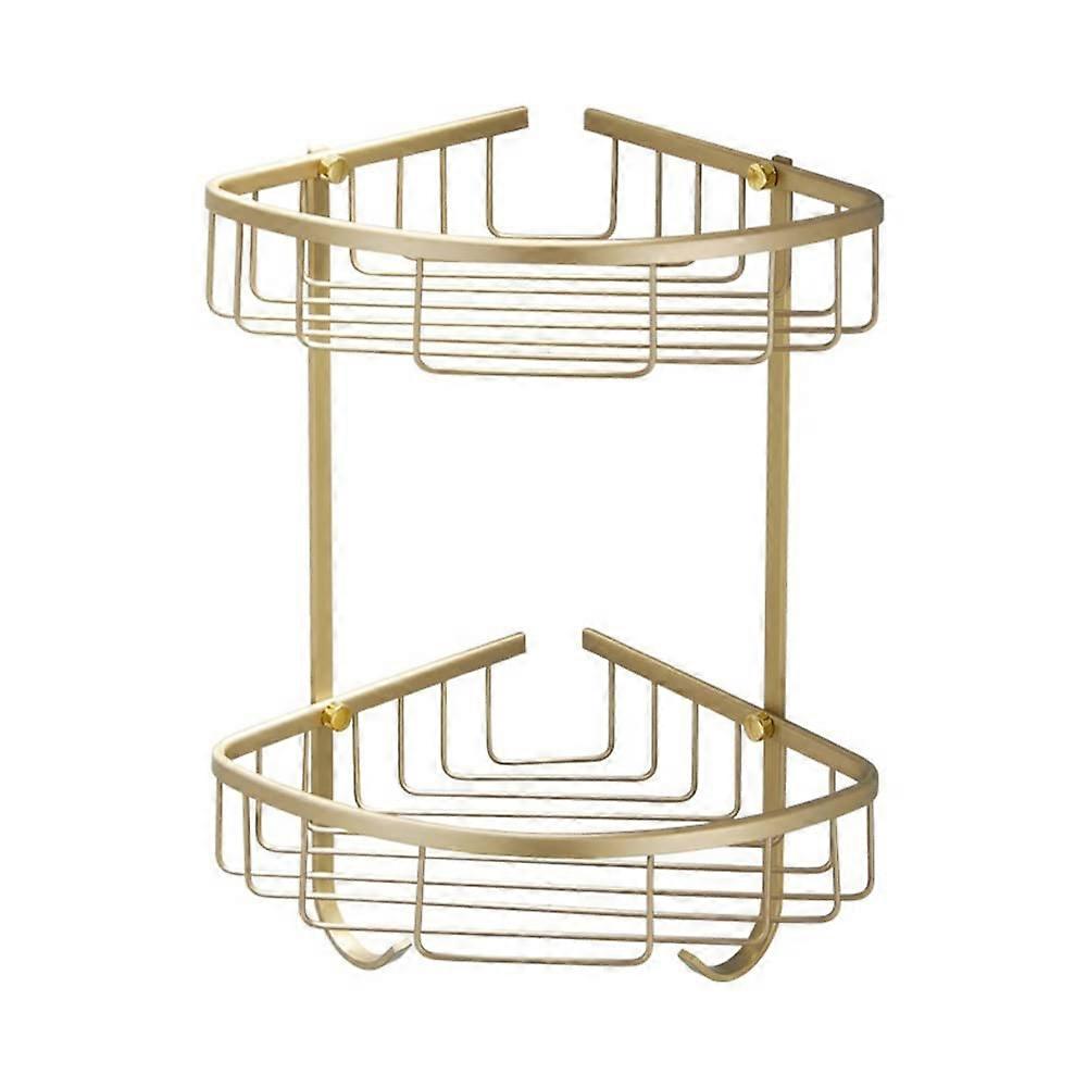 Corner Shower Caddy Brushed Gold Wall Mounted Shower Organizer, Double Tier Style 2 Bathroom Storage Rack