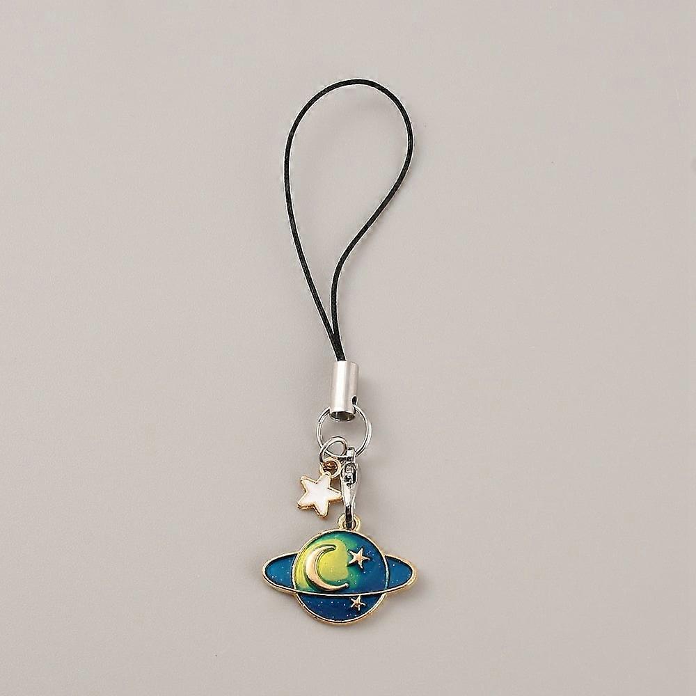 2pc Cute Cartoon Planet Alloy Enamel Mobile Straps Lanyards for Mobile Phone Strap Hang Rope Smart Phone Charm Lime 8.6~8.8cm