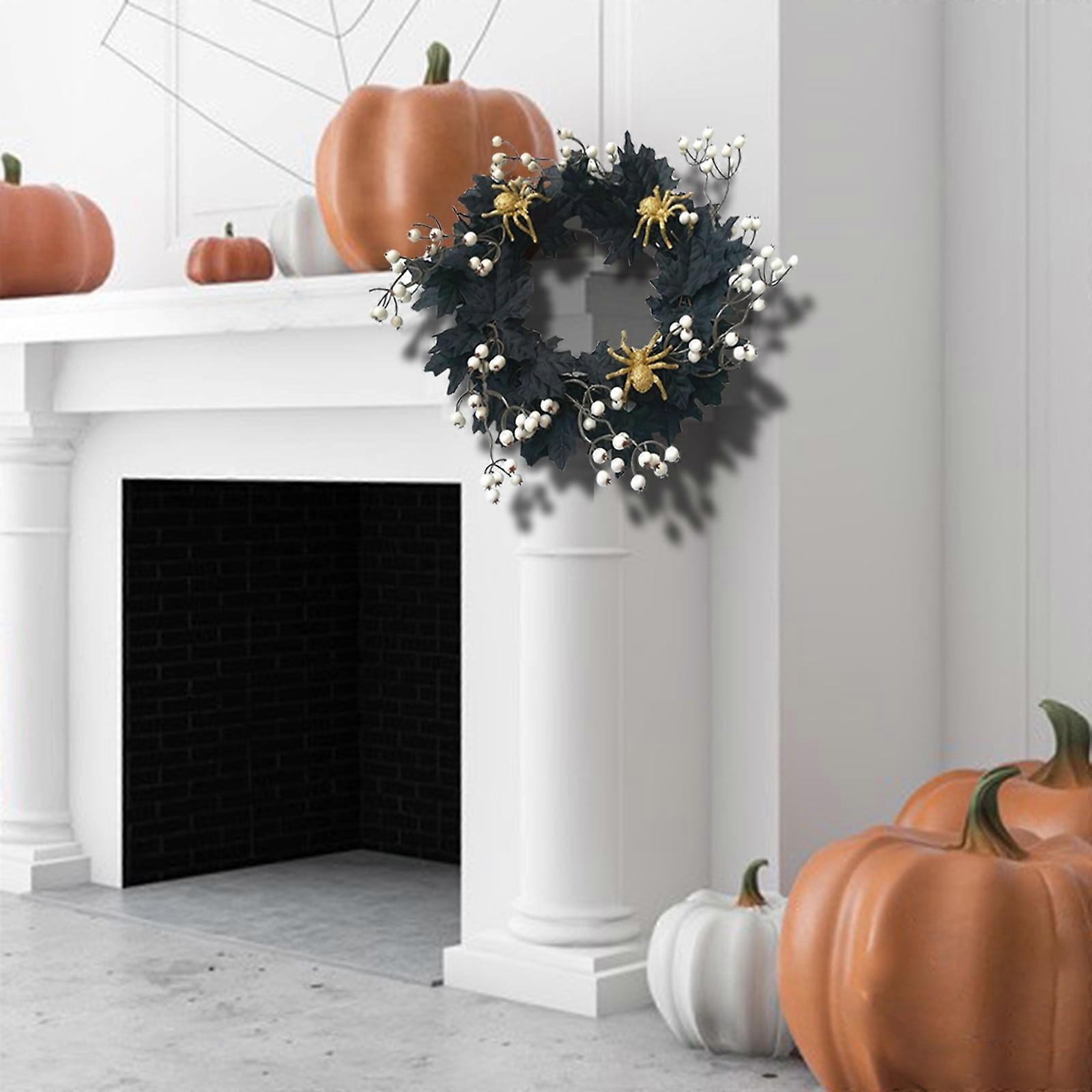 Halloween Maple Leaf Wreath for Front Door, Outdoor Fall Harvest Decoration, Thanksgiving Grapevine Wreath with Artificial Leaves