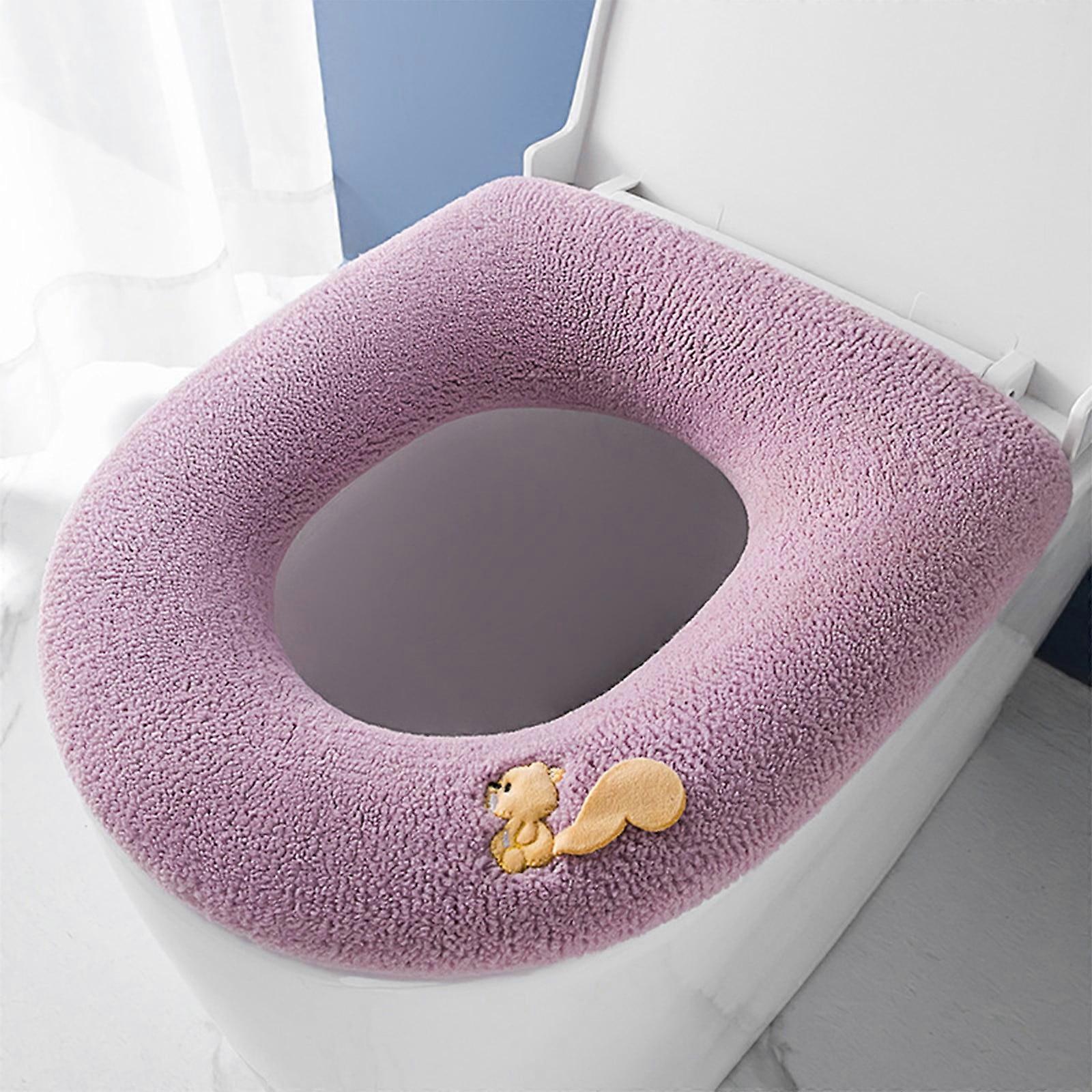 Reusable Fuzzy Toilet Seat Cover, Machine-Washable Warm Cushion for Bathroom, Compatible with Standard Toilets, Home Decoration - Purple