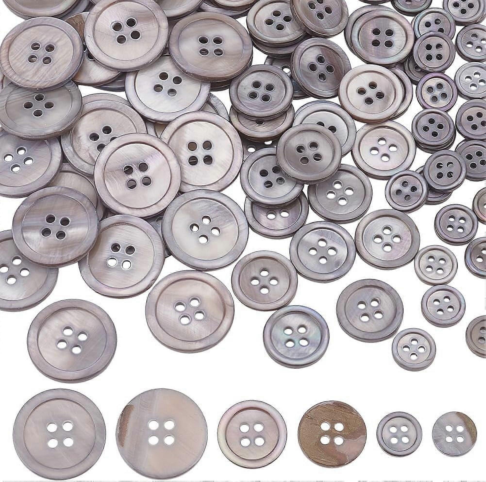 100pcs Natural Shell Buttons 4-Hole 10/15/20mm Round Grey for Cloth Coats Suits Jackets Blazers Jeans Skirts Crafts Sewing