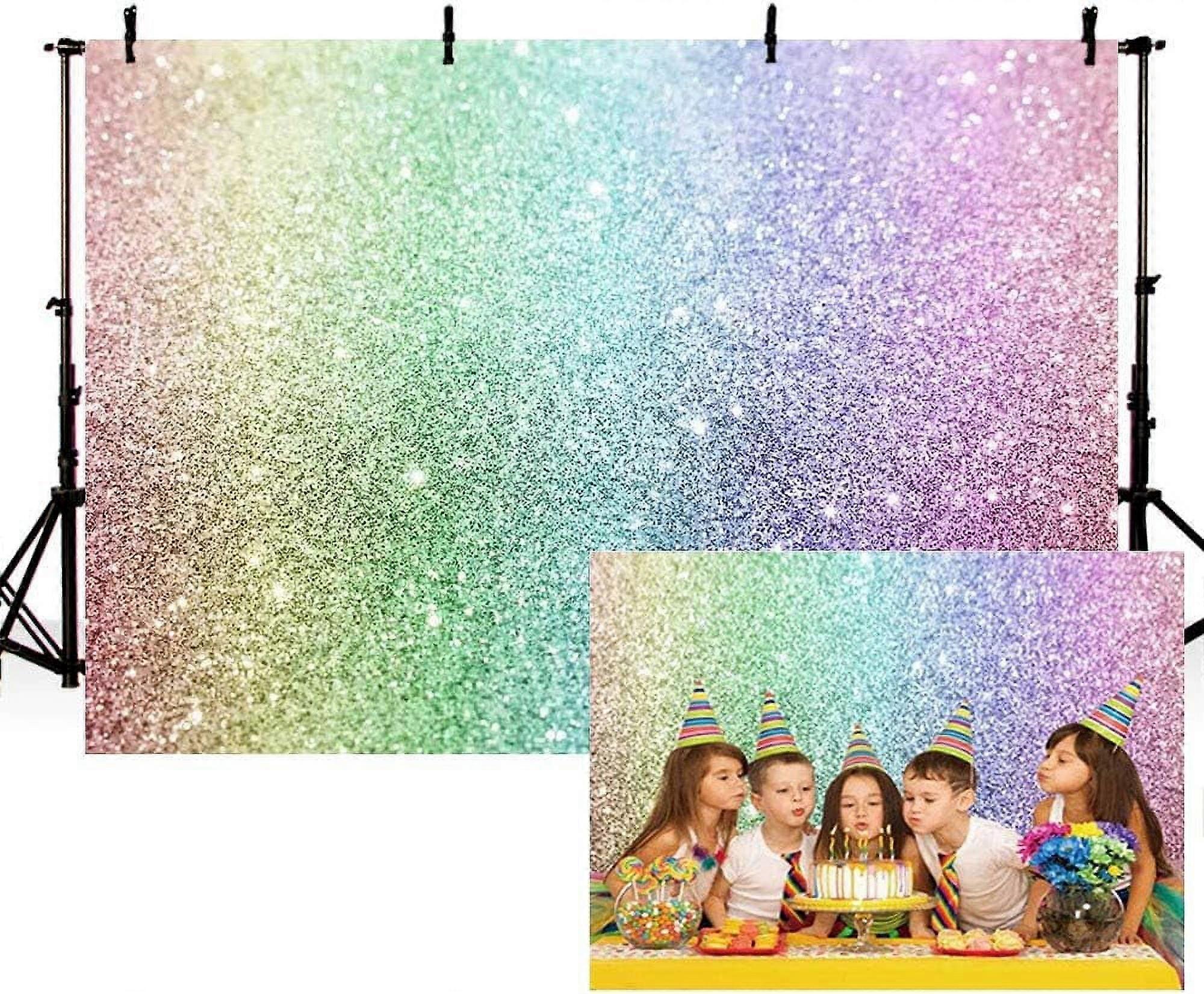 Custom Glitter Rainbow Backdrop 7x5ft, Happy Birthday Party Decoration for Kids, Girl, Princess, Unicorn, Compatible with Photography Background