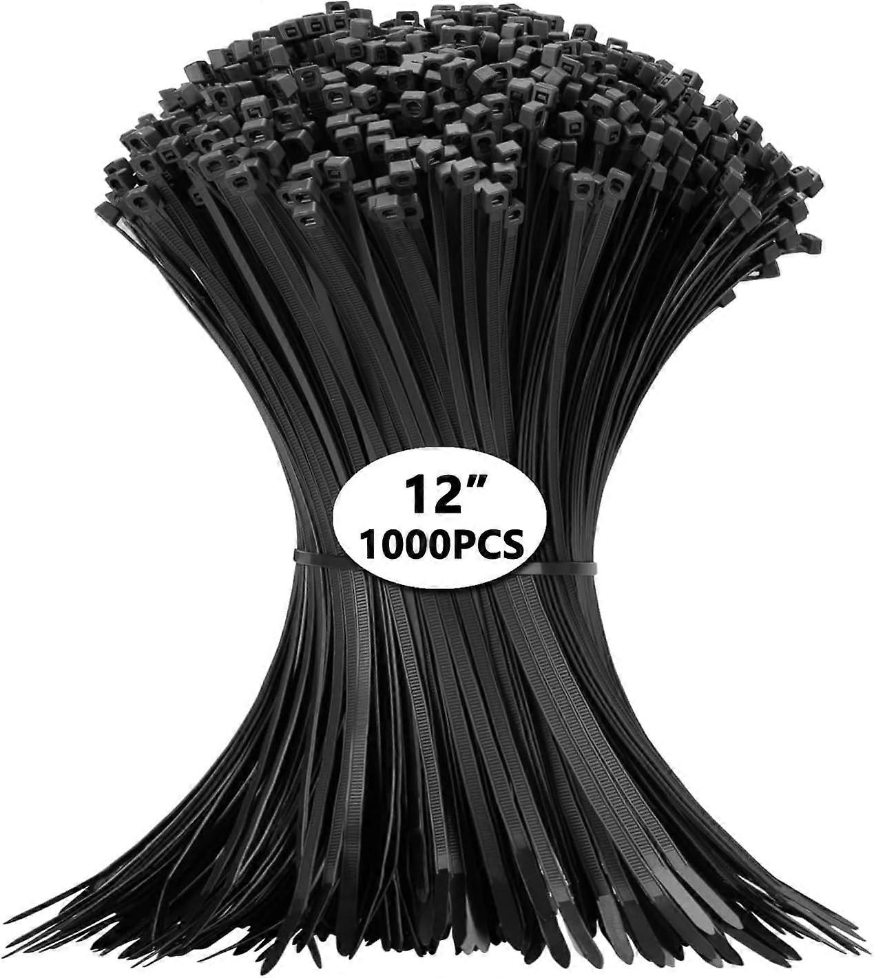 12 Inch Zip Ties Black 1000 PCS, 50 Lbs- Heavy Duty Tensile Strength, Nylon PA66 UV Resistant Cable Ties for Indoor