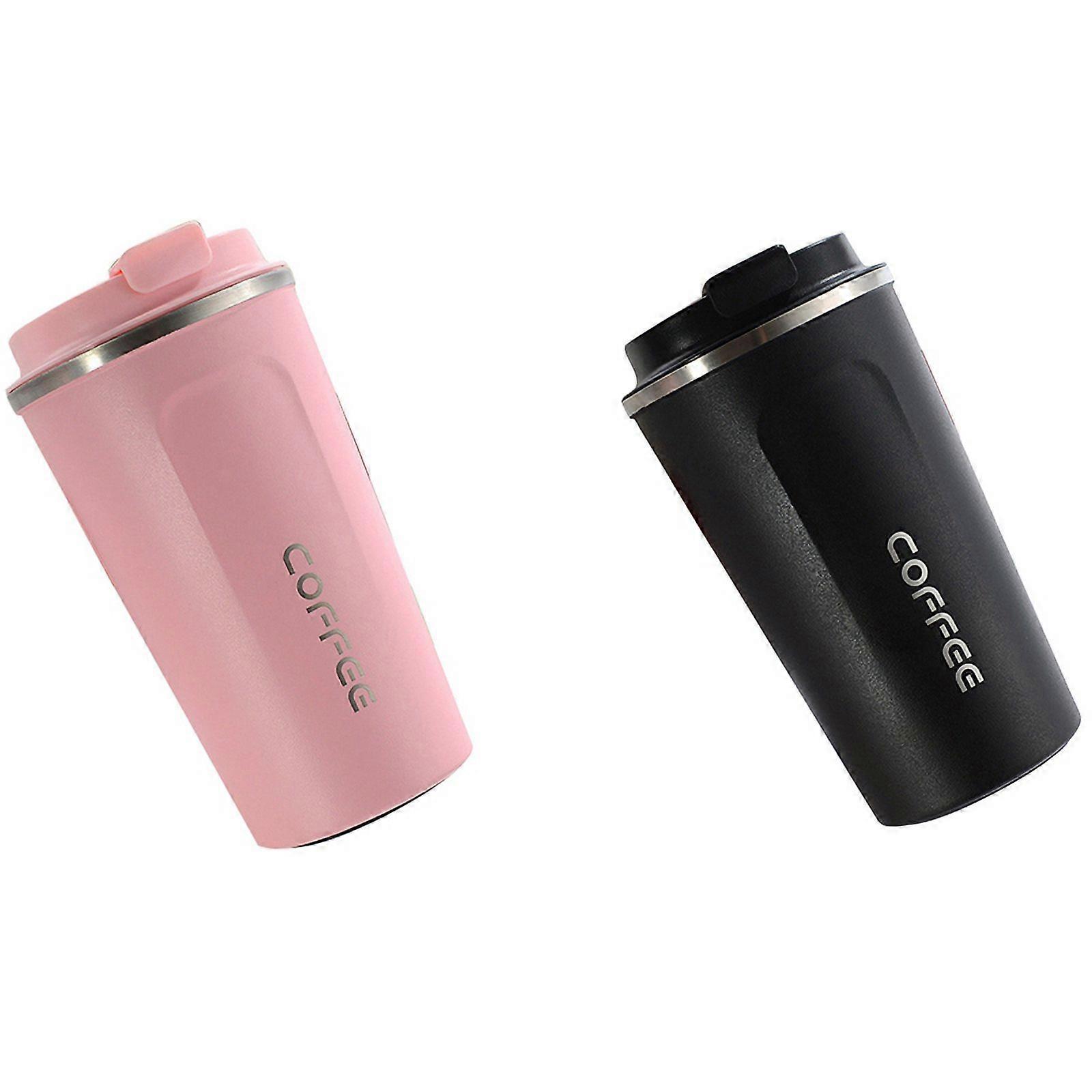2x 380ML Heat Preservation Coffee Mug Stainless Steel Mug Coffee Milk Cup Vaccum Flasks Cup Black & 510ML Pink