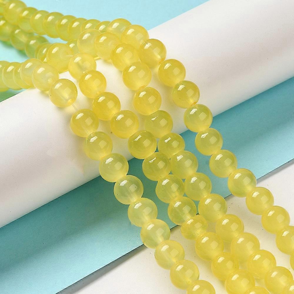 Baking Painted Imitation Jade Glass Round Bead Strands Yellow 8.5~9mm Hole: 1.5mm about 105pcs/strand 31.8 inch