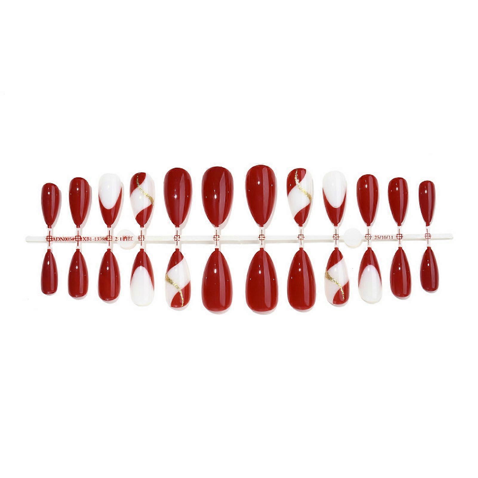 24 Pcs Fake Nails Fashionable Artificial Nail Tips with Glossy Finish and Metal