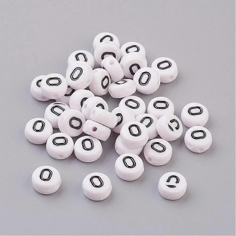 100pc Flat Round with Letter O Acrylic Beads White & Black 7x4mm hole: 1mm