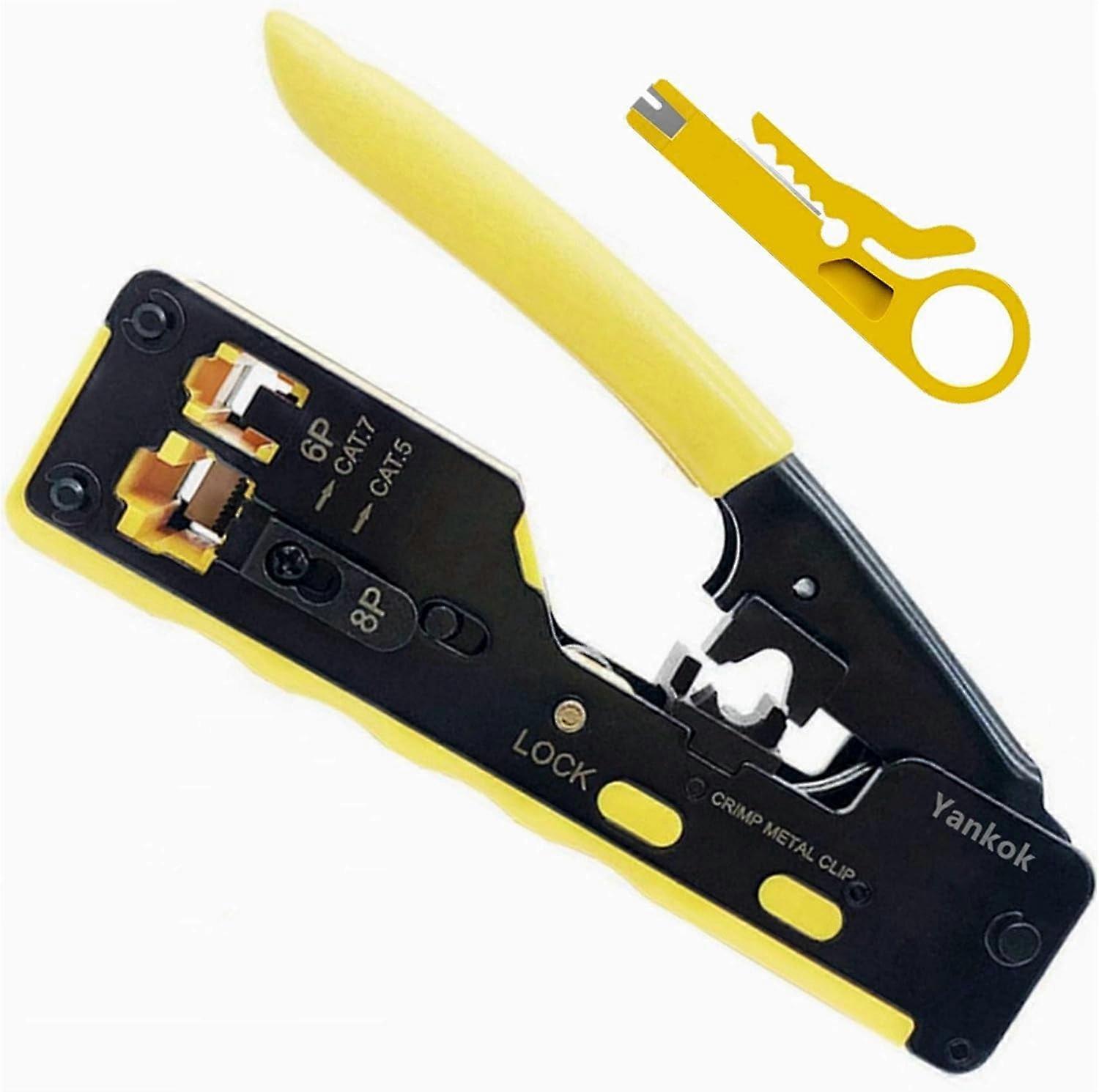 [CAT5 CAT6 CAT7 Pass Through Crimper] for RJ45 RJ12 RJ11 Connectors CAT6a Shielded Modular Plugs (Yellow Grip.