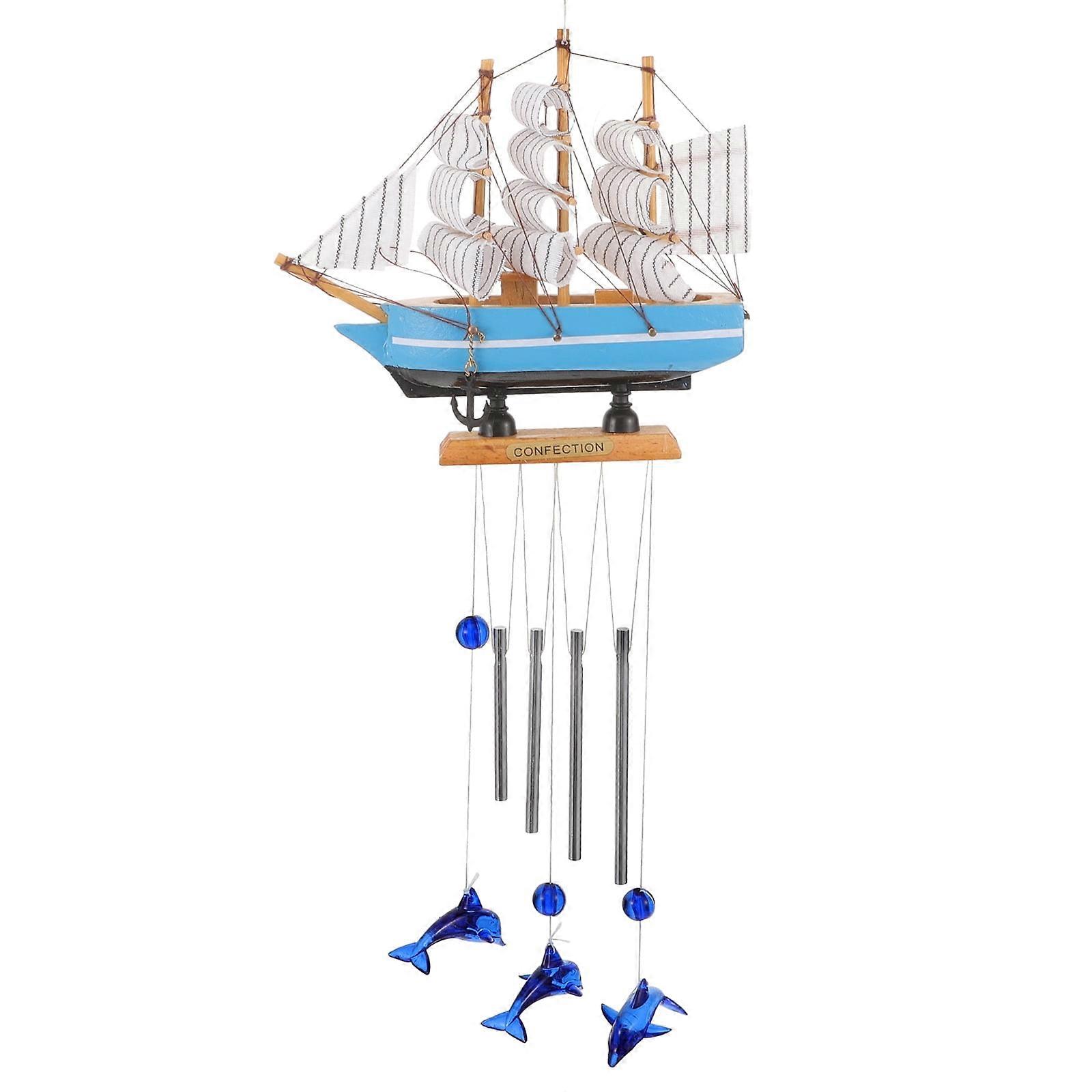 Balcony Wind Chime Sailboat Nautical Dolphin Ornament Hanging Bell Window Wooden Seaside