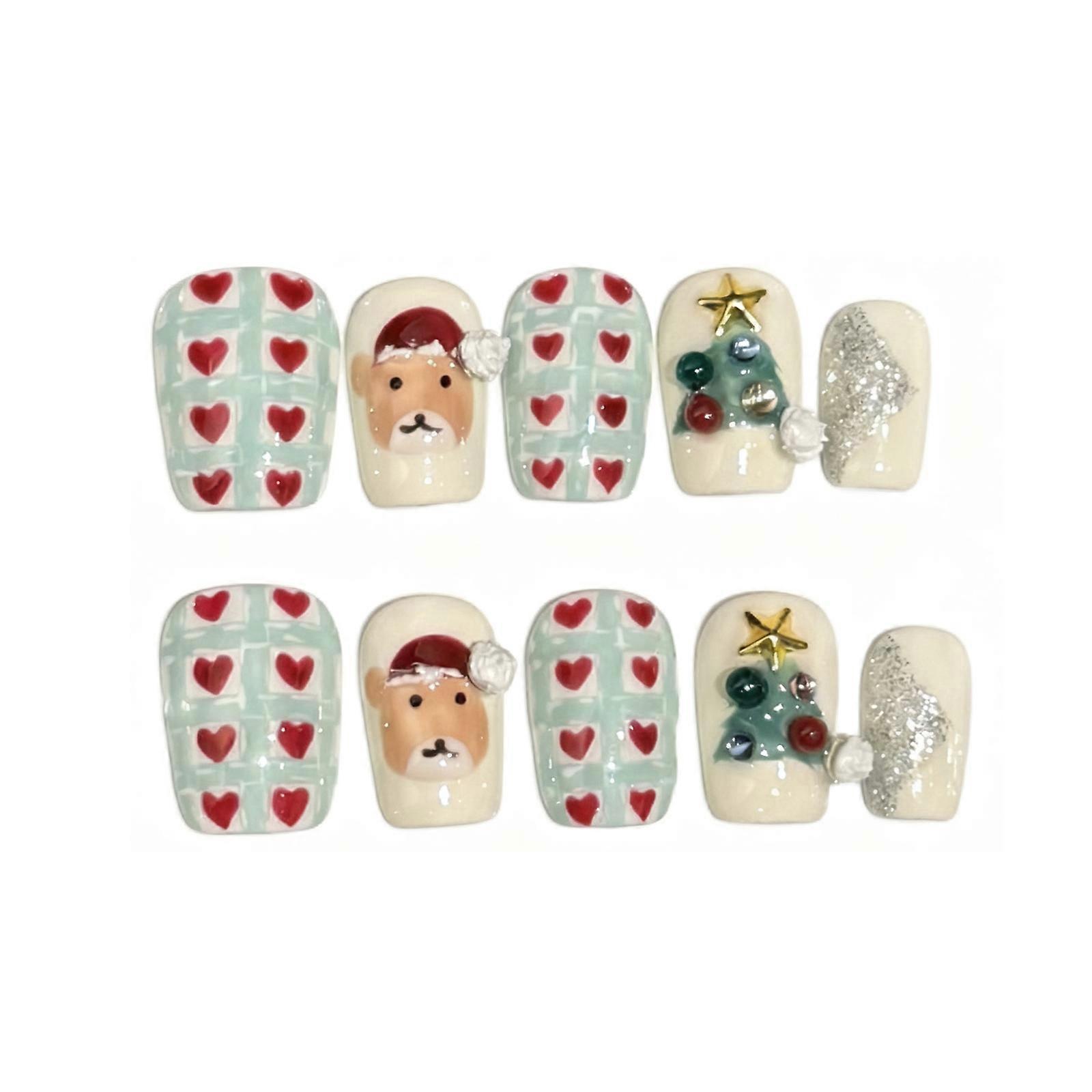 Features: Hand Painted Design: Each press on nail is meticulously hand painted with festive reindeer patterns, ensuring a unique and vibrant holiday look for any celebration. Perfect Nail Fit: The short coffin shape offers a comfortable and secure fit for most natural nail sizes, providing a seamless and professional appearance. Durable Material: Made from good quality ABS and gel coating, these reusable nail tips resist chipping and maintain shine throughout extended wear. Festive Occasion Ready: Ideal for Christmas parties, holiday gatherings, or seasonal events, these decorative nails add a joyful touch to your festive outfit. Usage Scenarios: Suitable for occasions such as Christmas celebrations, parties, photo shoots, and festive dressing. Colour remains vibrant and fade-resistant. Specifications: Material: Eco-Friendly ABS Plastic Quantity: 10 Pieces Size,Thumb,Index Finger,Middle Finger,The Fourth Finger,Little Finger XS,1.4cm,1cm,1.1cm,1cm,0.7cm S,1.5cm,1.1cm,1.2cm,1.1cm,0.8cm M,1.6cm,1.2cm,1.3cm,1.2cm,0.9cm L,1.7cm,1.3cm,1.4cm,1.3cm,1cm Include: 1 * Set of 10pcs Christmas Reindeer Fake Nails