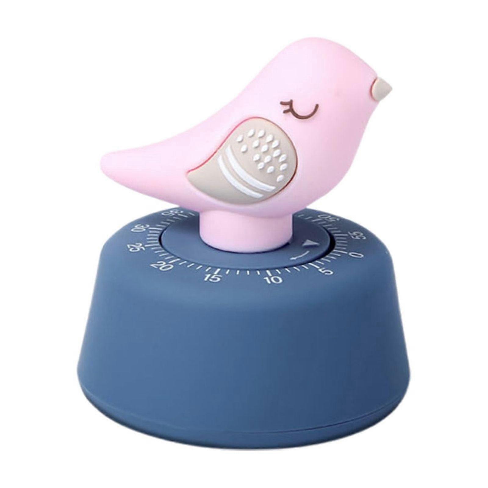 Kitchen Timer, 60 Minutes Mechanical Kitchen Timer, Cute Bird Timer for Kids, Wind Up Egg Timer for Cooking, Reading, Classroom and Do Sports (Pink)