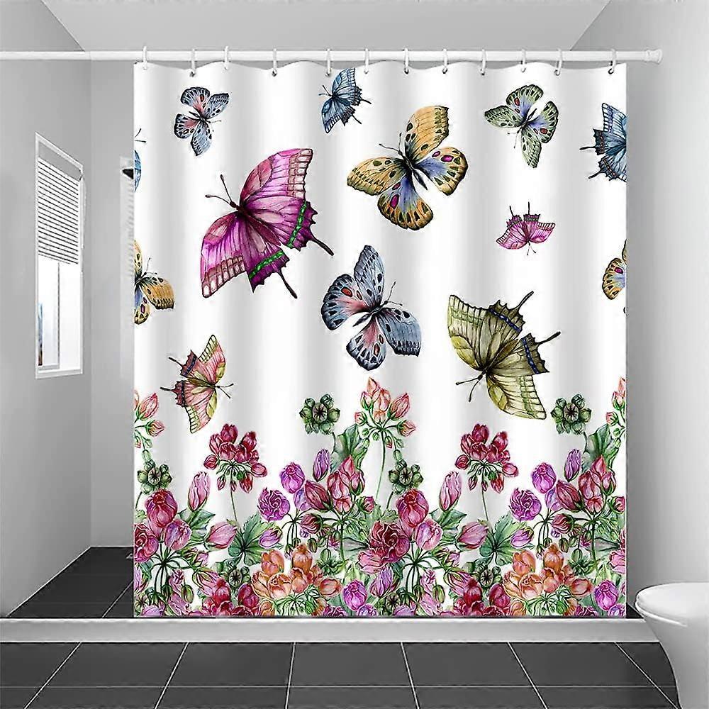 Multicolored Butterfly Shower Curtain Set with Hooks, 72"x72" Floral Boho Fabric for Bathtub, Rustic Farmhouse Bathroom Decor