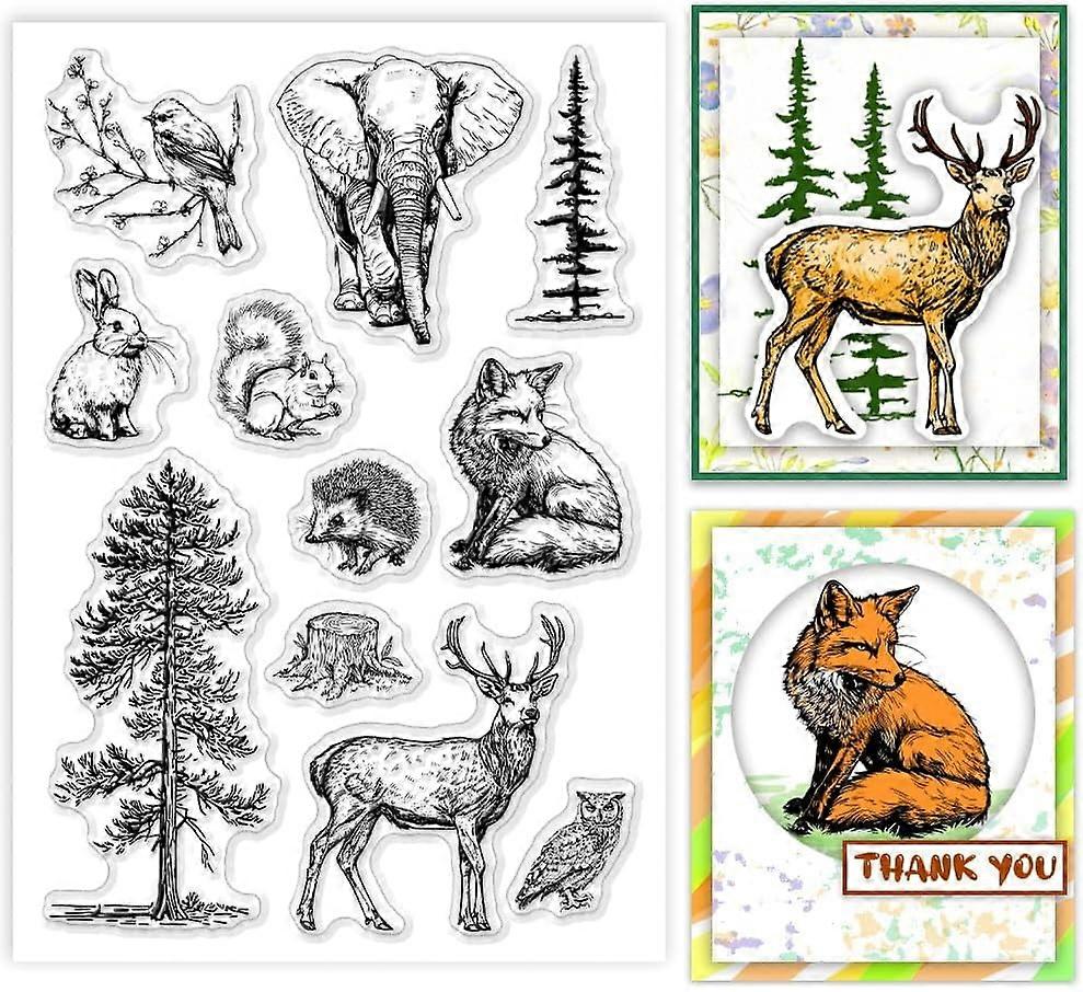 Forest Animals Clear Silicone Stamps, 6.3x4.3 Inch, Transparent Rubber Seals for Card Making, Scrapbooking, DIY Crafts, Compatible with Craft