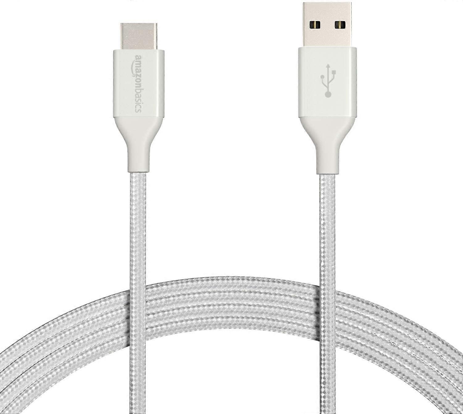 Double Braided Nylon USB-C to USB-A 2.0 Fast Charging Cable, 3A - 10-Foot, Silver