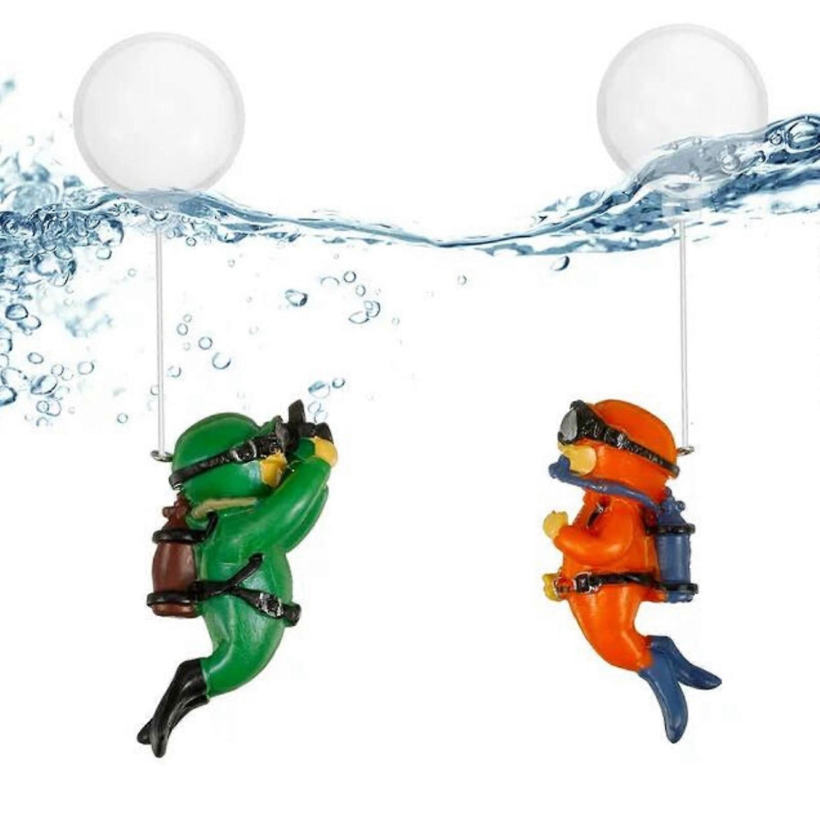 Yakbaofuo 2Pc Fish Tank Decorations, Cute Diver Aquarium Ornaments, Floating Accessories for Tank, Desktop, Christmas & Halloween (Orange Green)