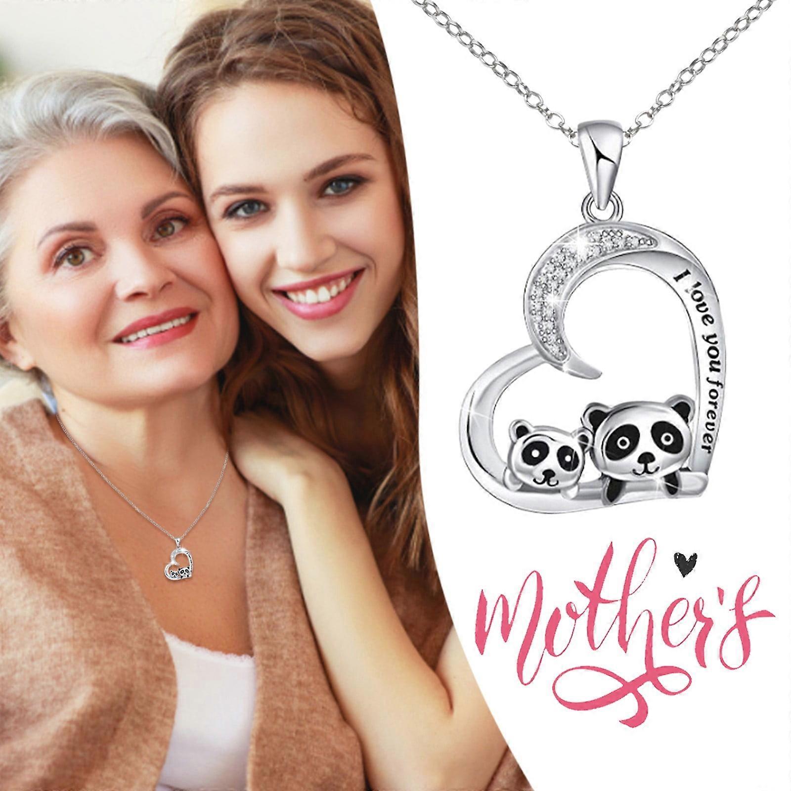Cute Animal Heart Necklace For Women I Love You Forever Mother And Daughter Panda Necklace Silver Panda Rhinestone Necklace