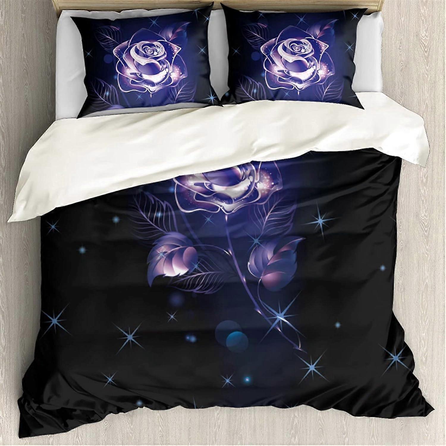 Duvet Cover 3 Pieces Comforter Set Soft Lightweight Quilt Bedding Bed Black Blue Rose
