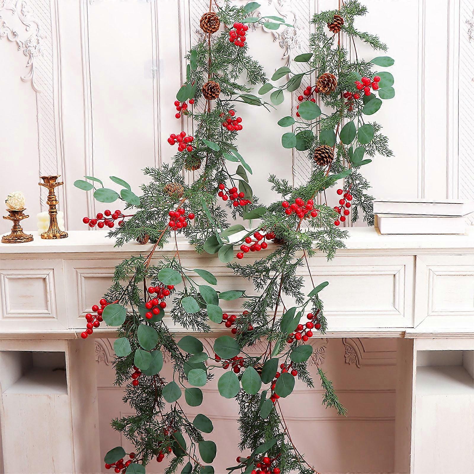 YANHAIGONG Christmas Garland Decorations, Outdoor Christmas Flower Garland, Simulation Plants with Red Fruit Pine Needles, Compatible with Christmas